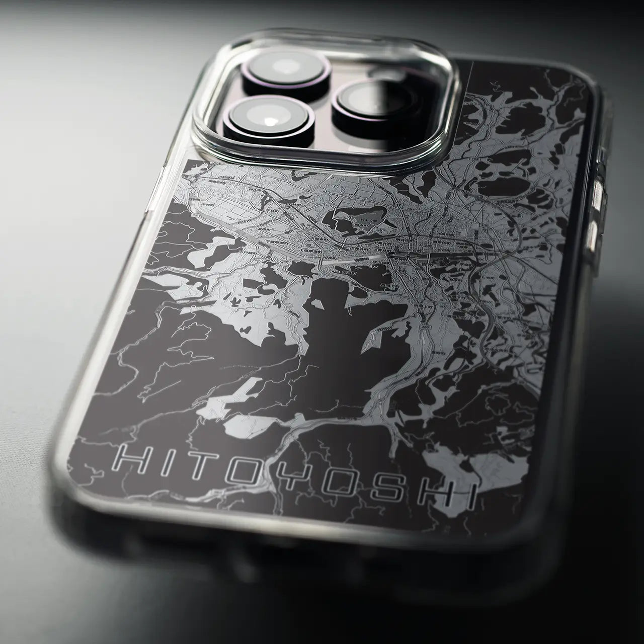 【人吉(熊本県)】地図柄iPhoneケース(MagSafeタイプ)モノトーン・iPhone 16 Pro 用
