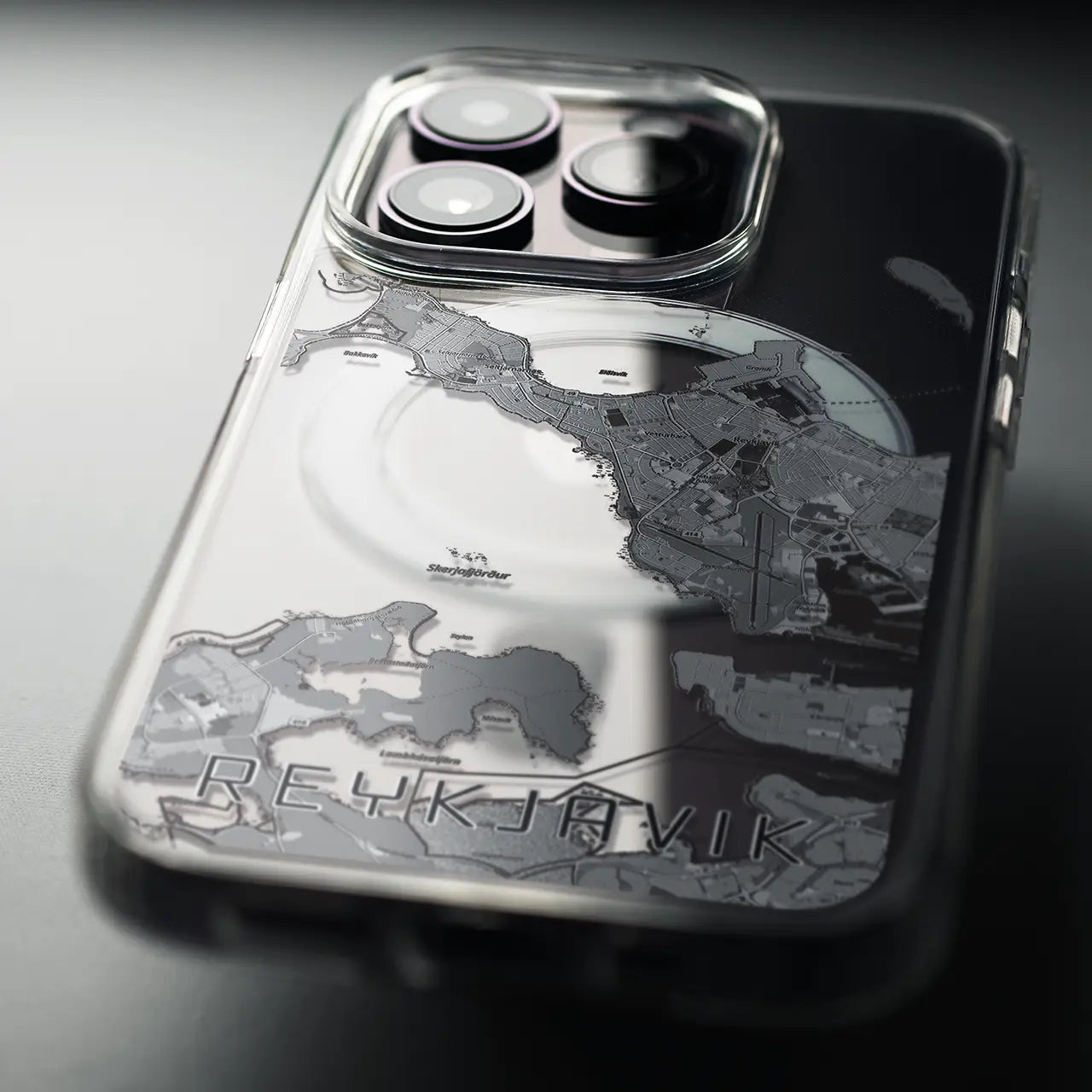 【レイキャヴィーク(アイスランド)】地図柄iPhoneケース(MagSafeタイプ)モノトーン・iPhone 16 Pro 用