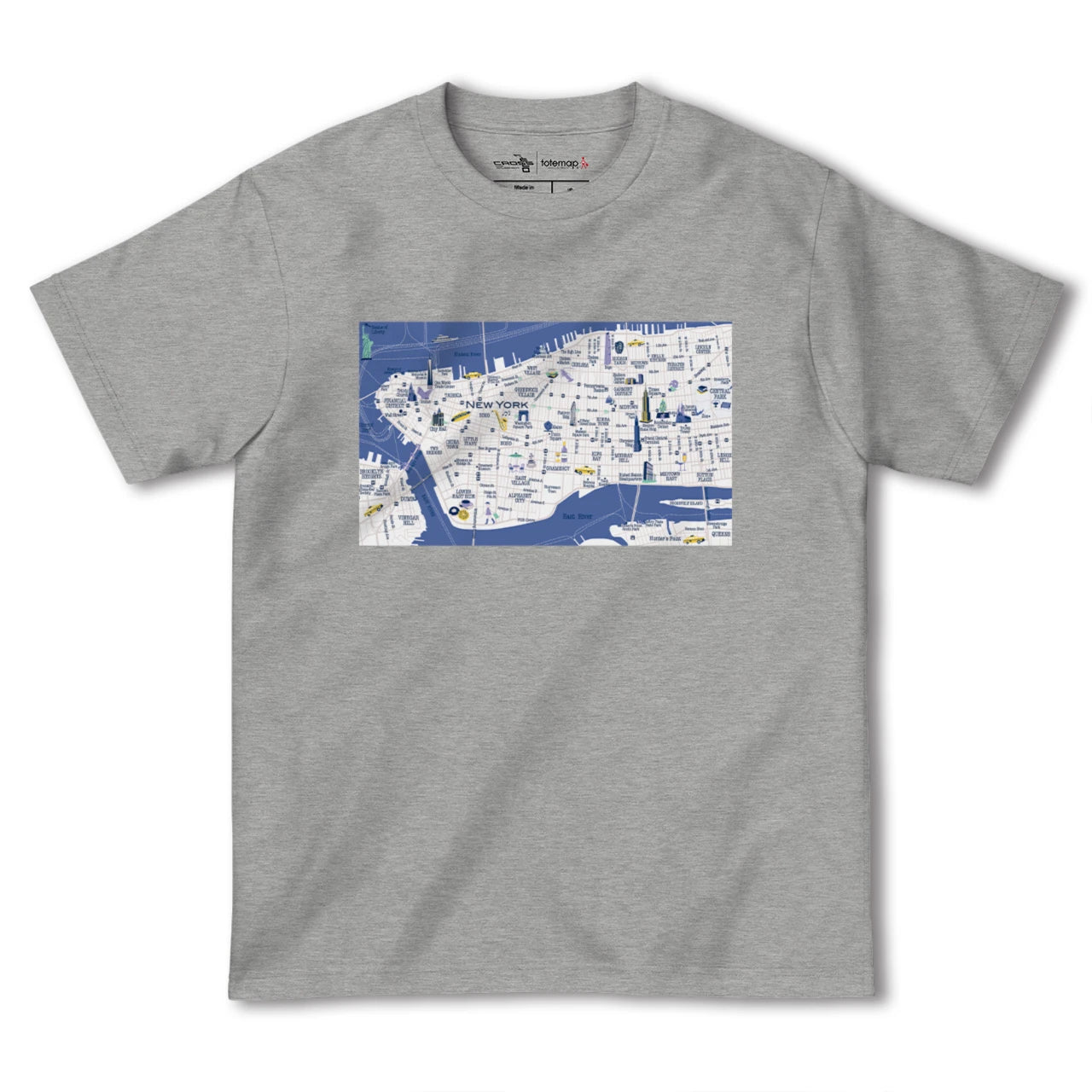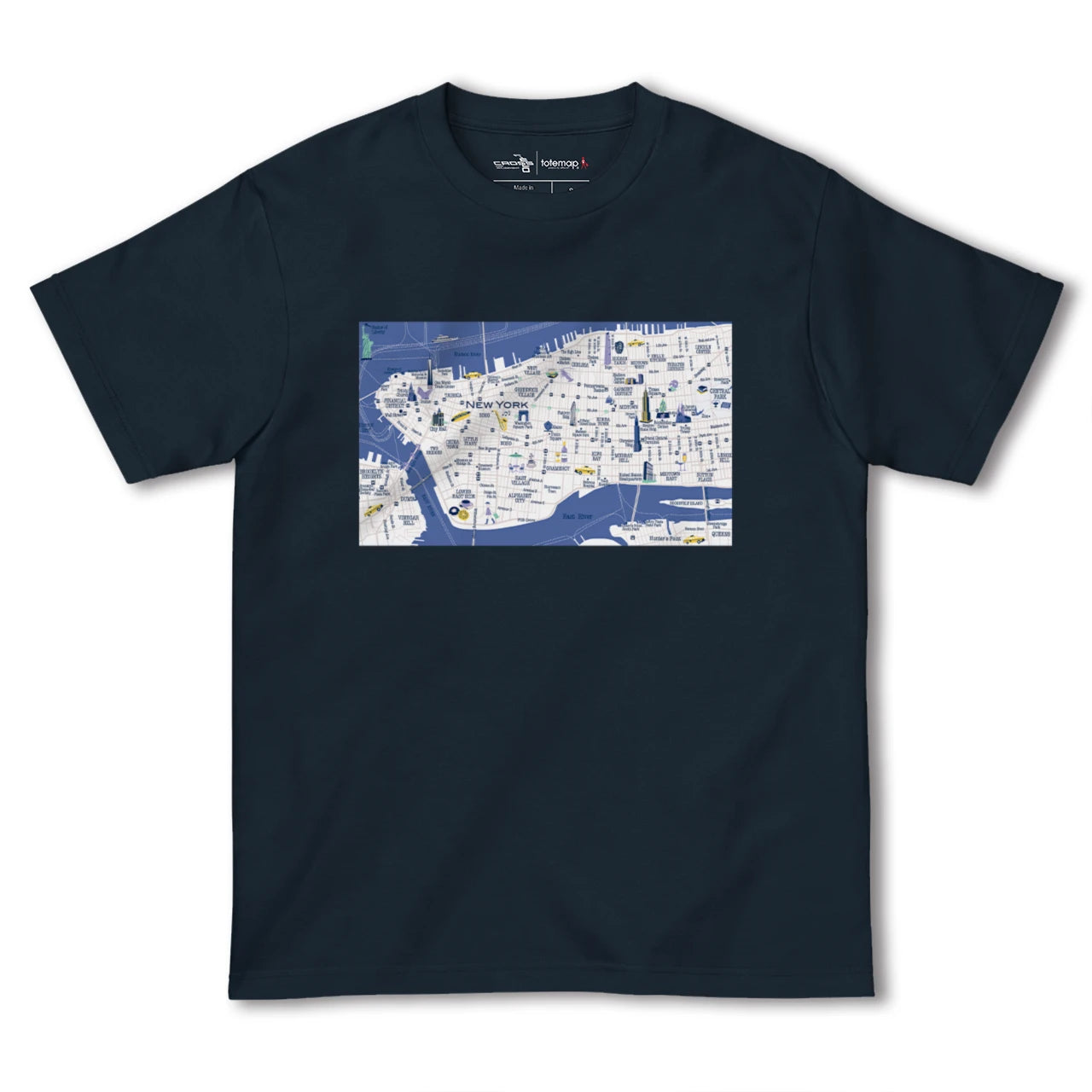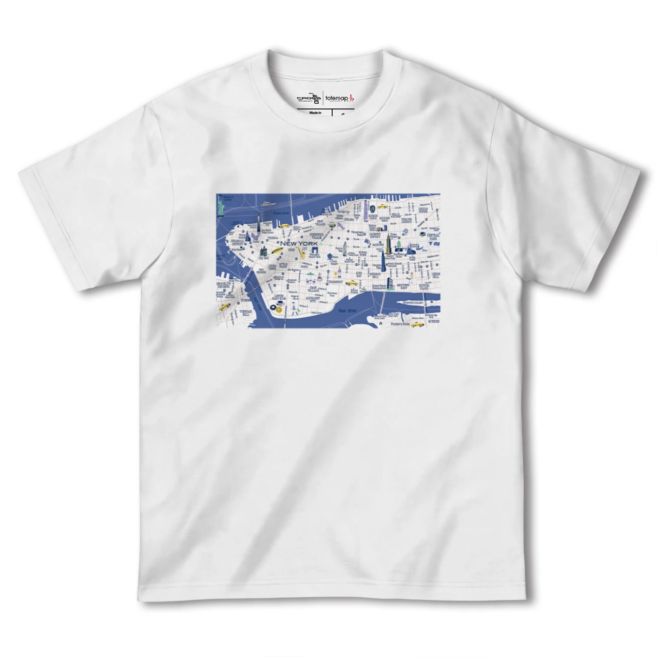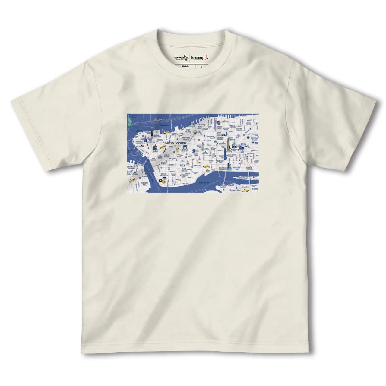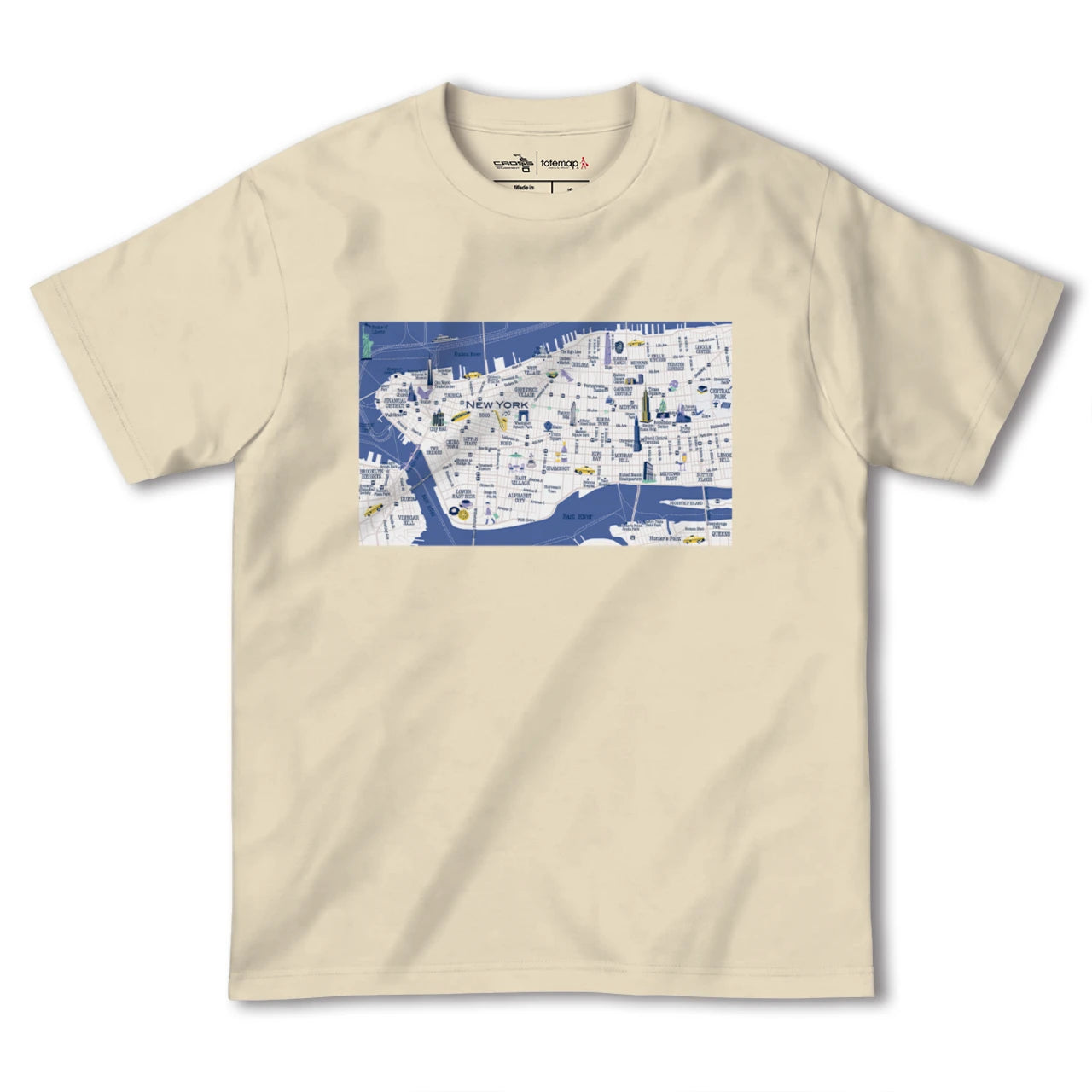 totemapとのコラボレーションで生まれたニューヨークのカラフルな地図柄Tシャツです。