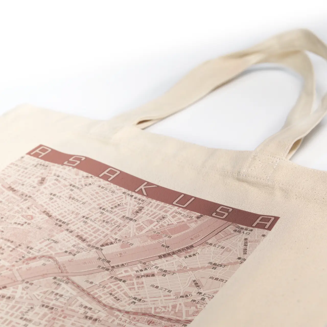 染色していないナチュラルコットンの風合いを生かしつつ浅草のマップをプリントしました。