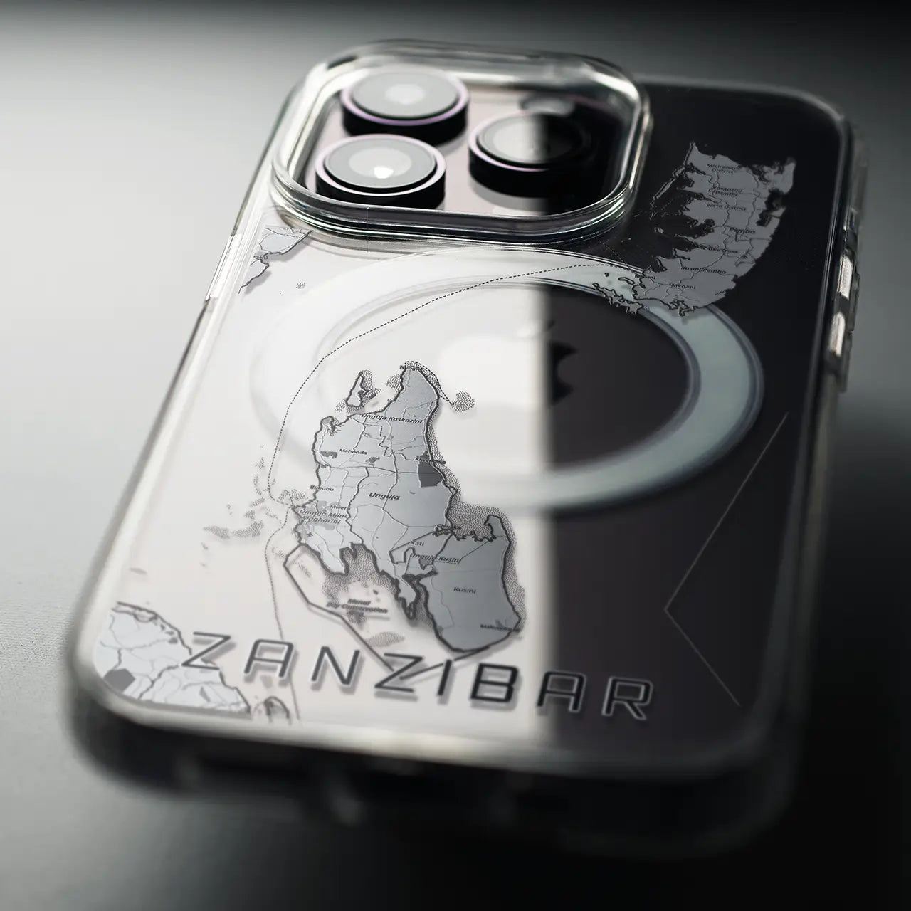 【ザンジバル(タンザニア)】地図柄iPhoneケース(MagSafeタイプ)モノトーン・iPhone 16 Pro 用