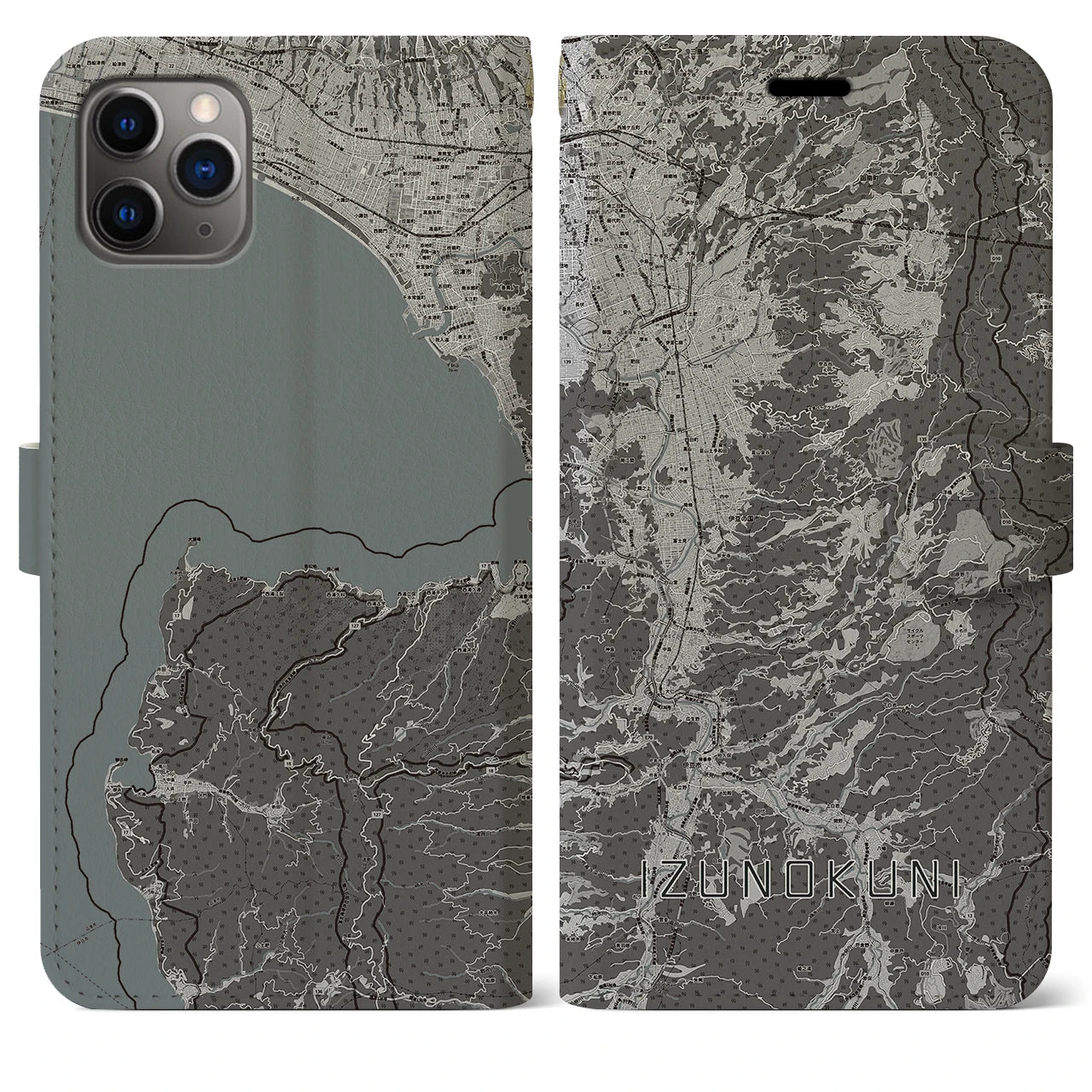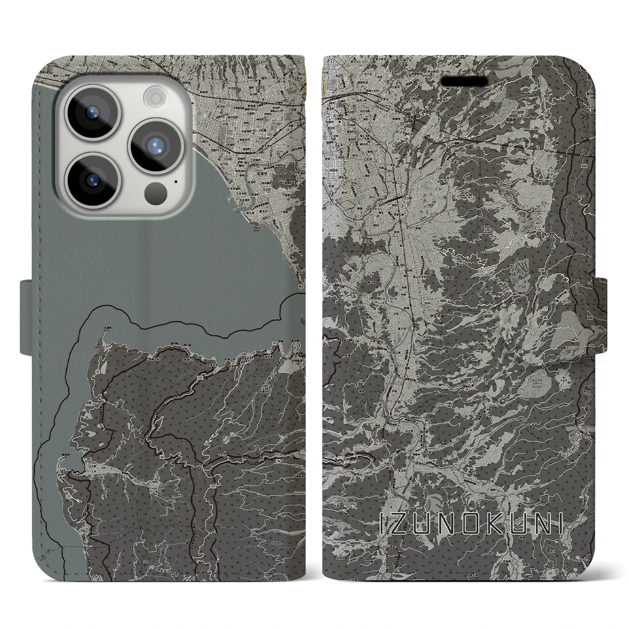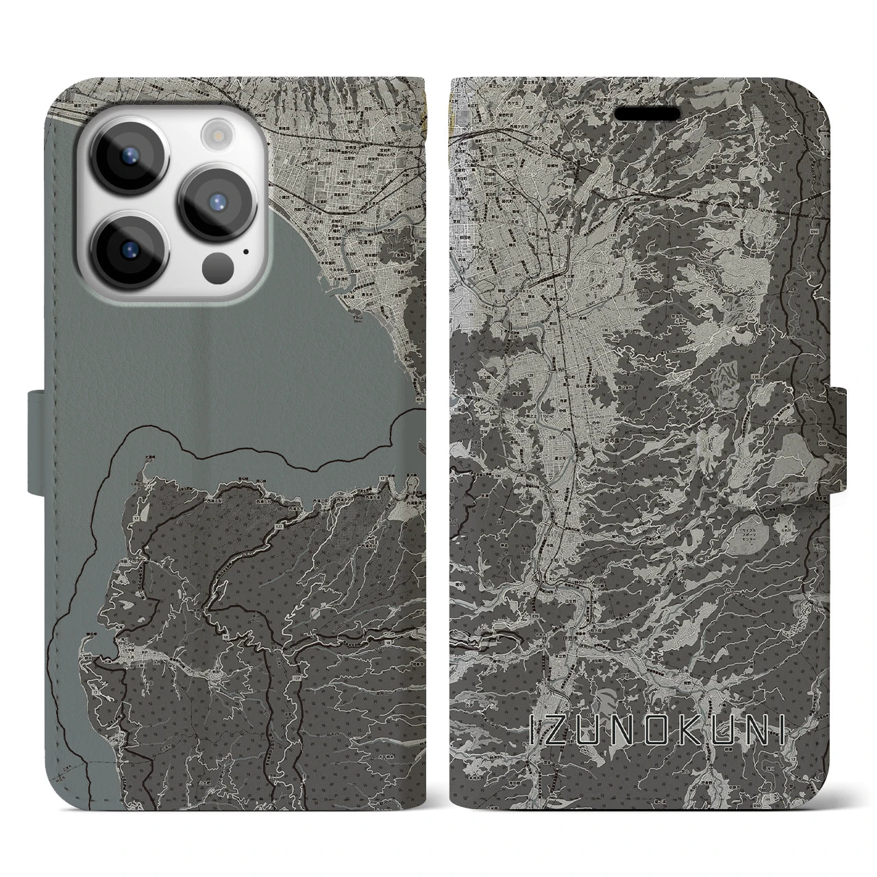 思い出の街、今を暮らす街、あなたが愛する「伊豆の国」の手帳タイプ地図柄iPhoneケースです。両面にまたがる大きなプリントで、離れていても「伊豆の国」をいつも身近に感じさせてくれます。