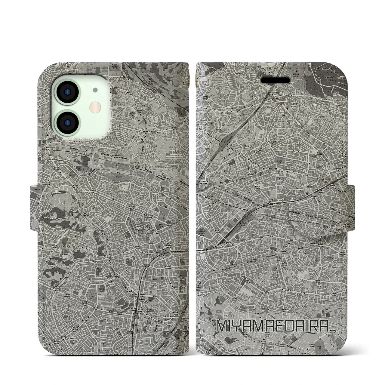 思い出の街、今を暮らす街、あなたが愛する「宮前平」の手帳タイプ地図柄iPhoneケースです。両面にまたがる大きなプリントで、離れていても「宮前平」をいつも身近に感じさせてくれます。
