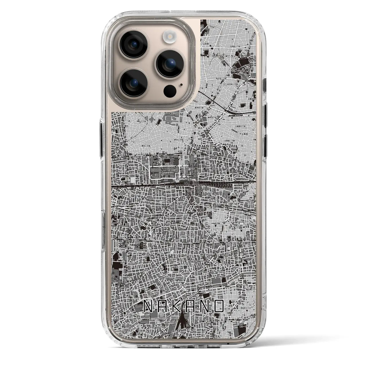 【中野2(東京都)】地図柄iPhoneケース(MagSafeタイプ)モノトーン・iPhone 16 Pro 用