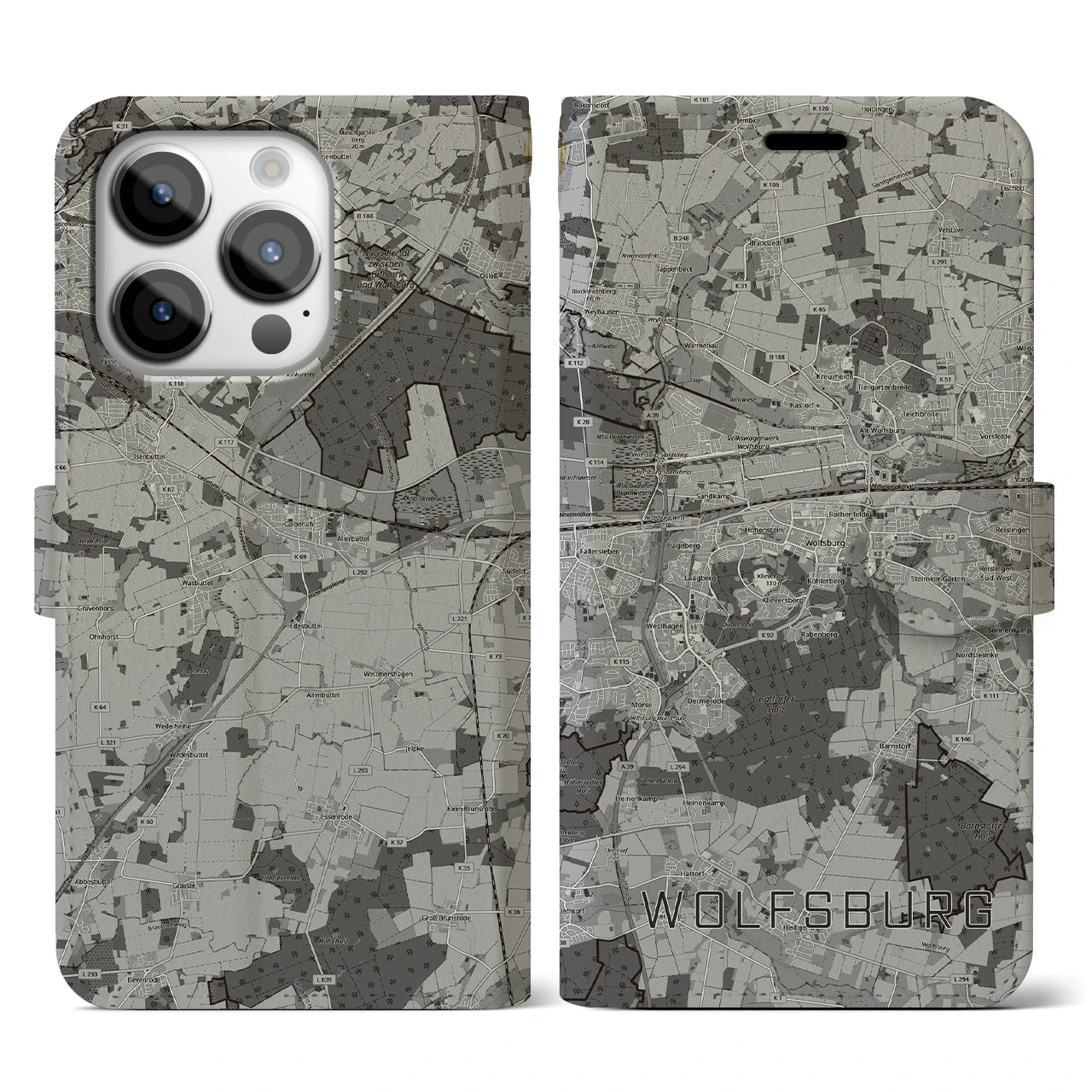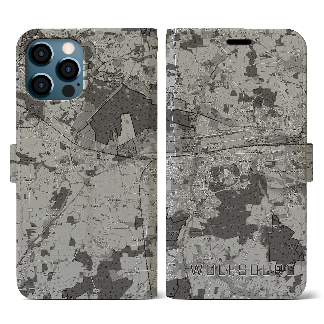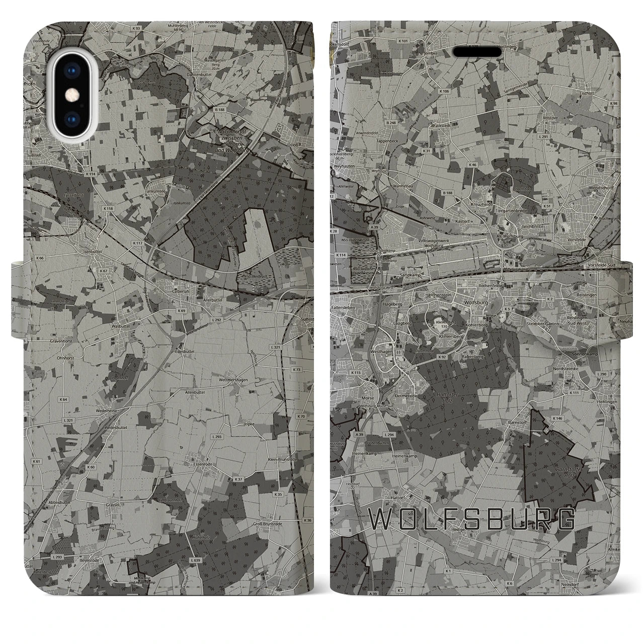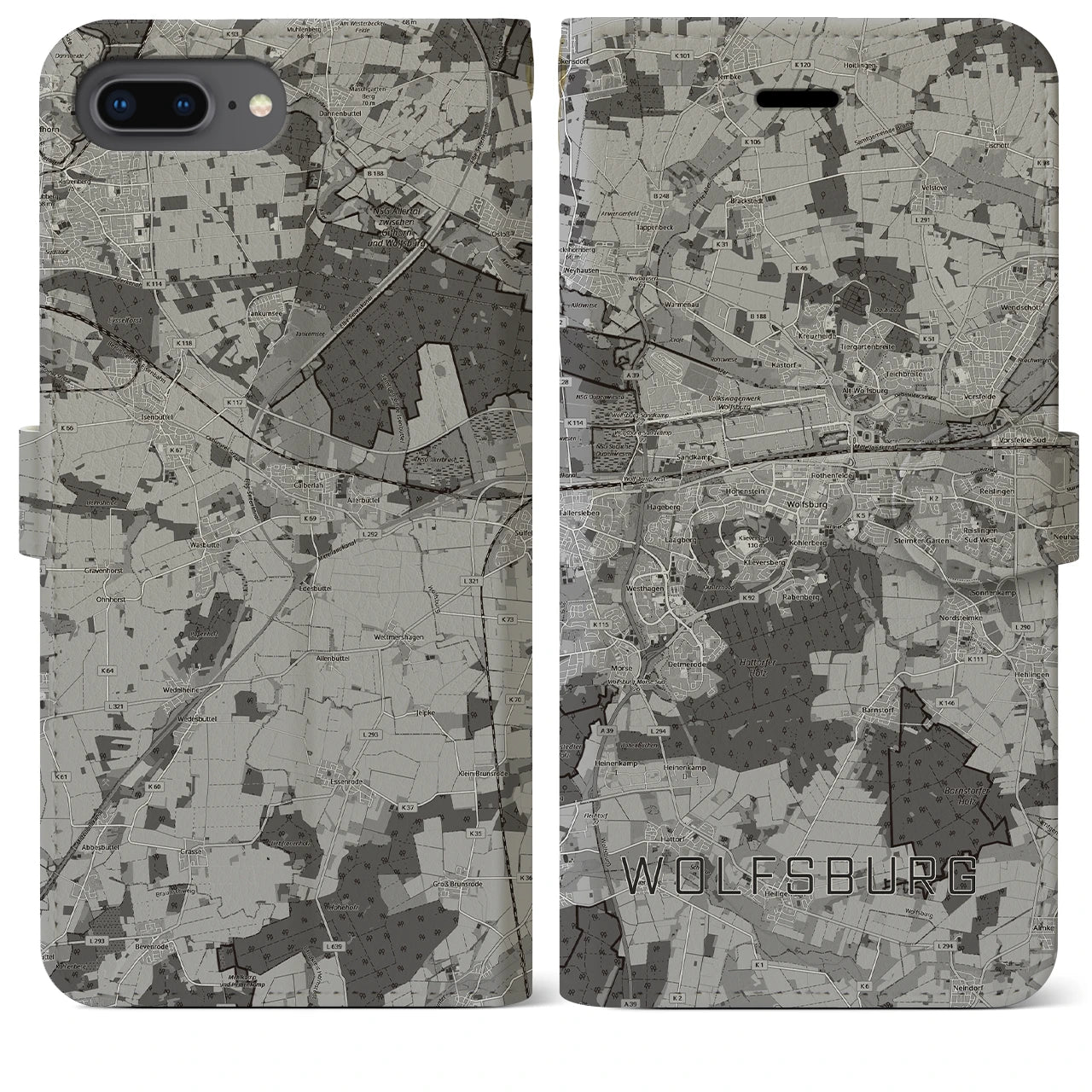 思い出の街、今を暮らす街、あなたが愛する「ヴォルフスブルク」の手帳タイプ地図柄iPhoneケースです。両面にまたがる大きなプリントで、離れていても「ヴォルフスブルク」をいつも身近に感じさせてくれます。