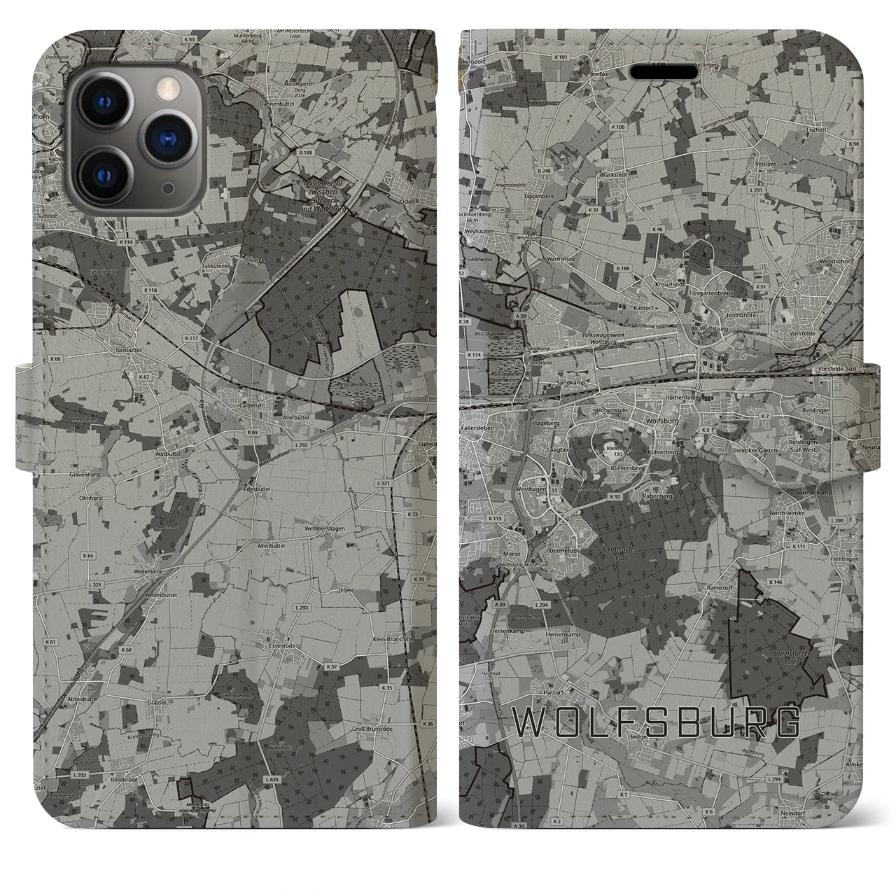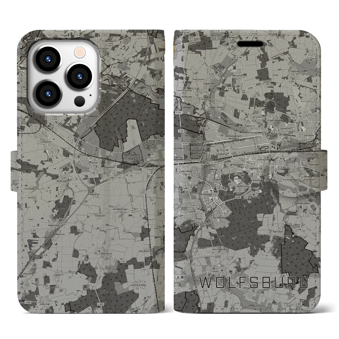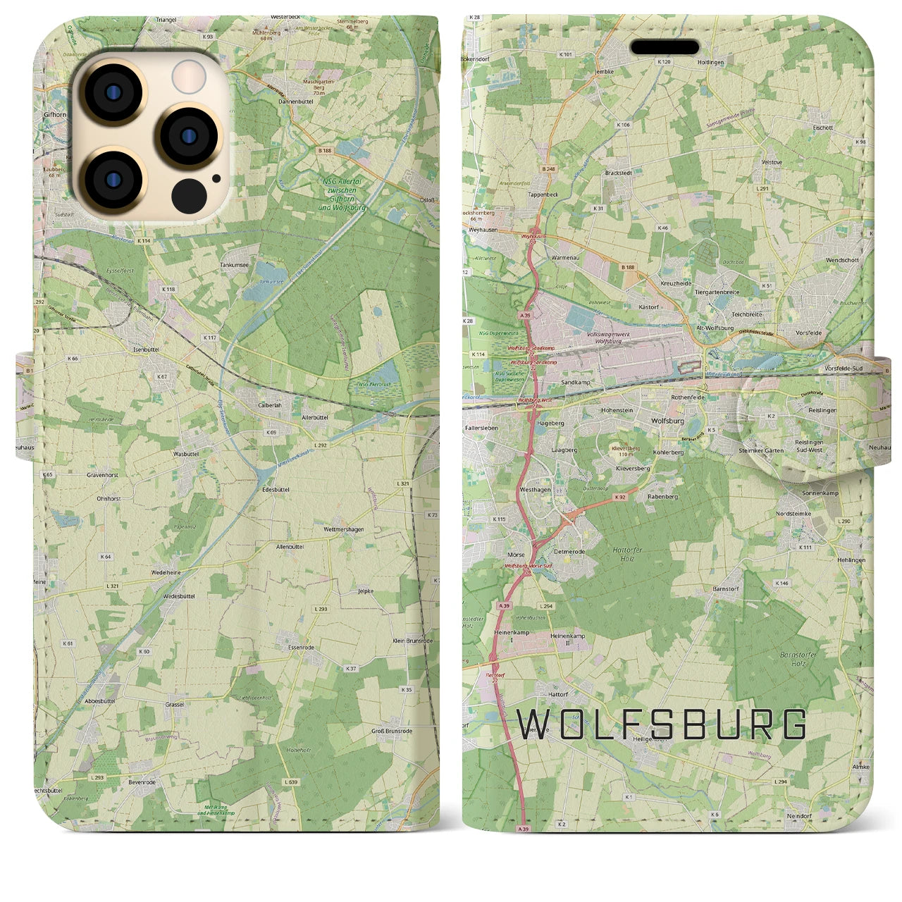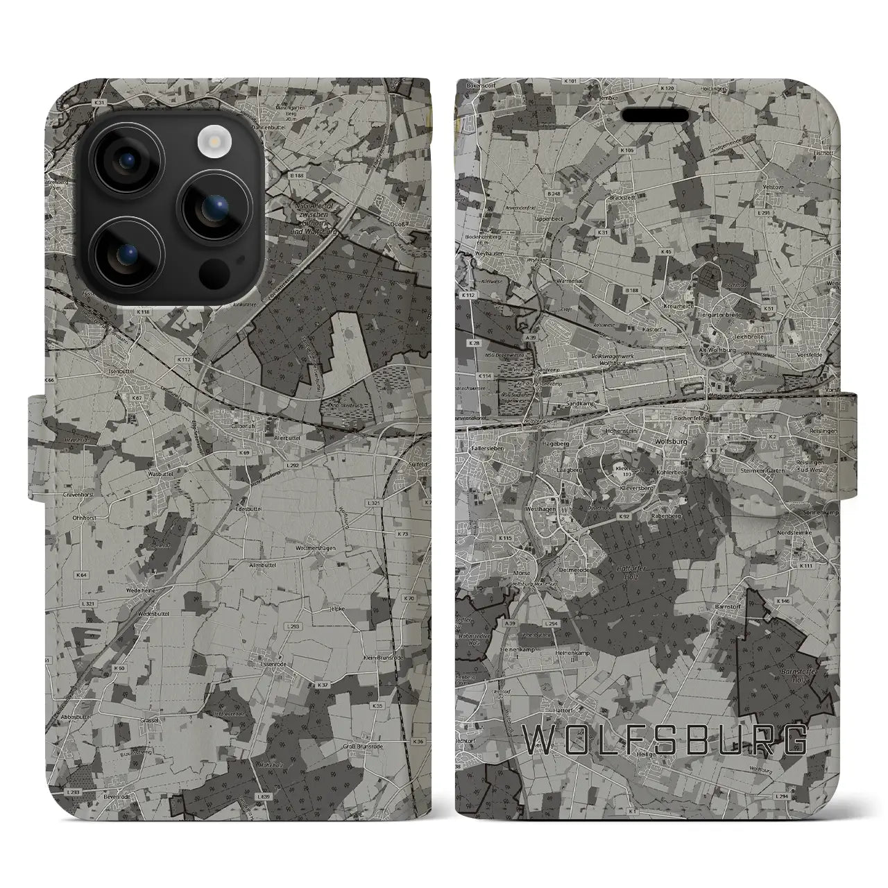 思い出の街、今を暮らす街、あなたが愛する「ヴォルフスブルク」の手帳タイプ地図柄iPhoneケースです。両面にまたがる大きなプリントで、離れていても「ヴォルフスブルク」をいつも身近に感じさせてくれます。