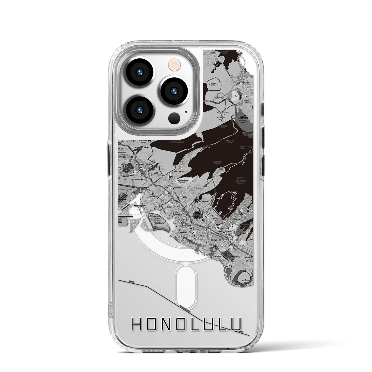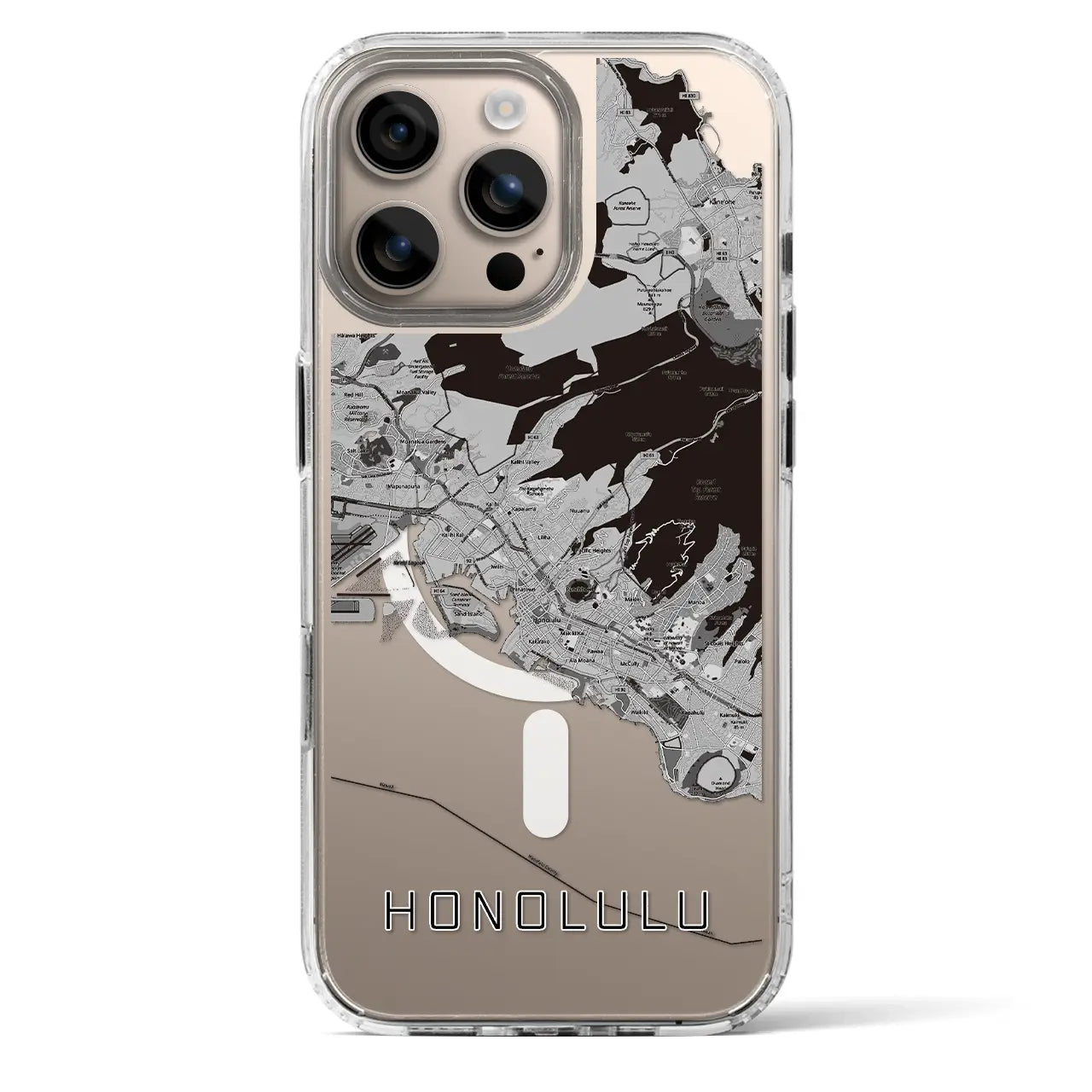 【ホノルル(アメリカ)】地図柄iPhoneケース(MagSafeタイプ)モノトーン・iPhone 16 Pro 用