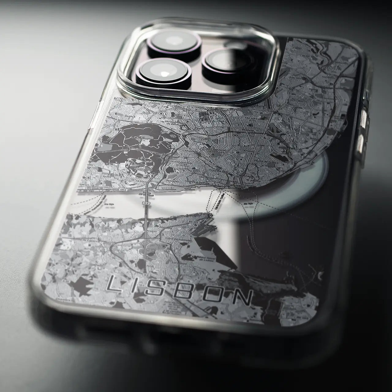 【リスボン(ポルトガル)】地図柄iPhoneケース(MagSafeタイプ)モノトーン・iPhone 16 Pro 用