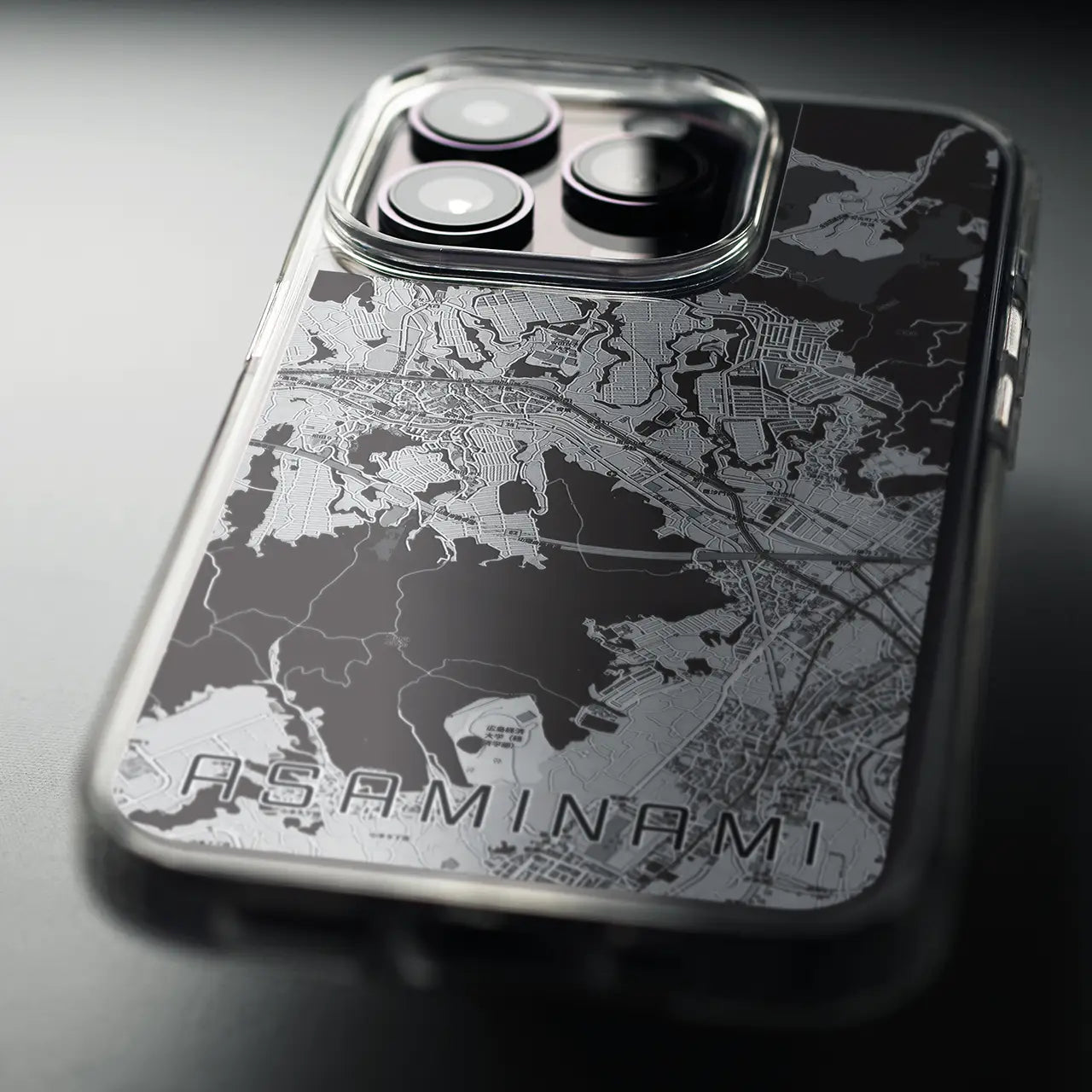 【安佐南(広島県)】地図柄iPhoneケース(MagSafeタイプ)モノトーン・iPhone 16 Pro 用