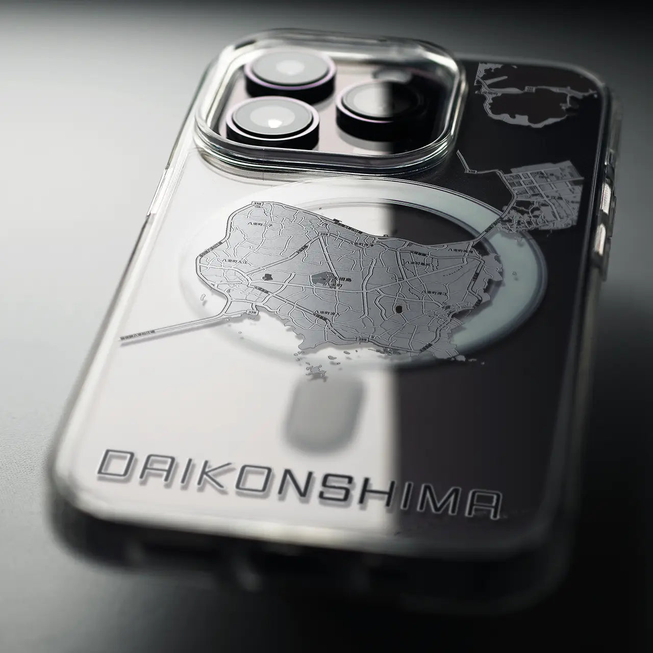 【大根島(島根県)】地図柄iPhoneケース(MagSafeタイプ)モノトーン・iPhone 16 Pro 用