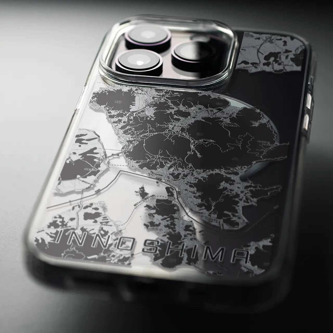 【因島(広島県)】地図柄iPhoneケース(MagSafeタイプ)モノトーン・iPhone 16 Pro 用