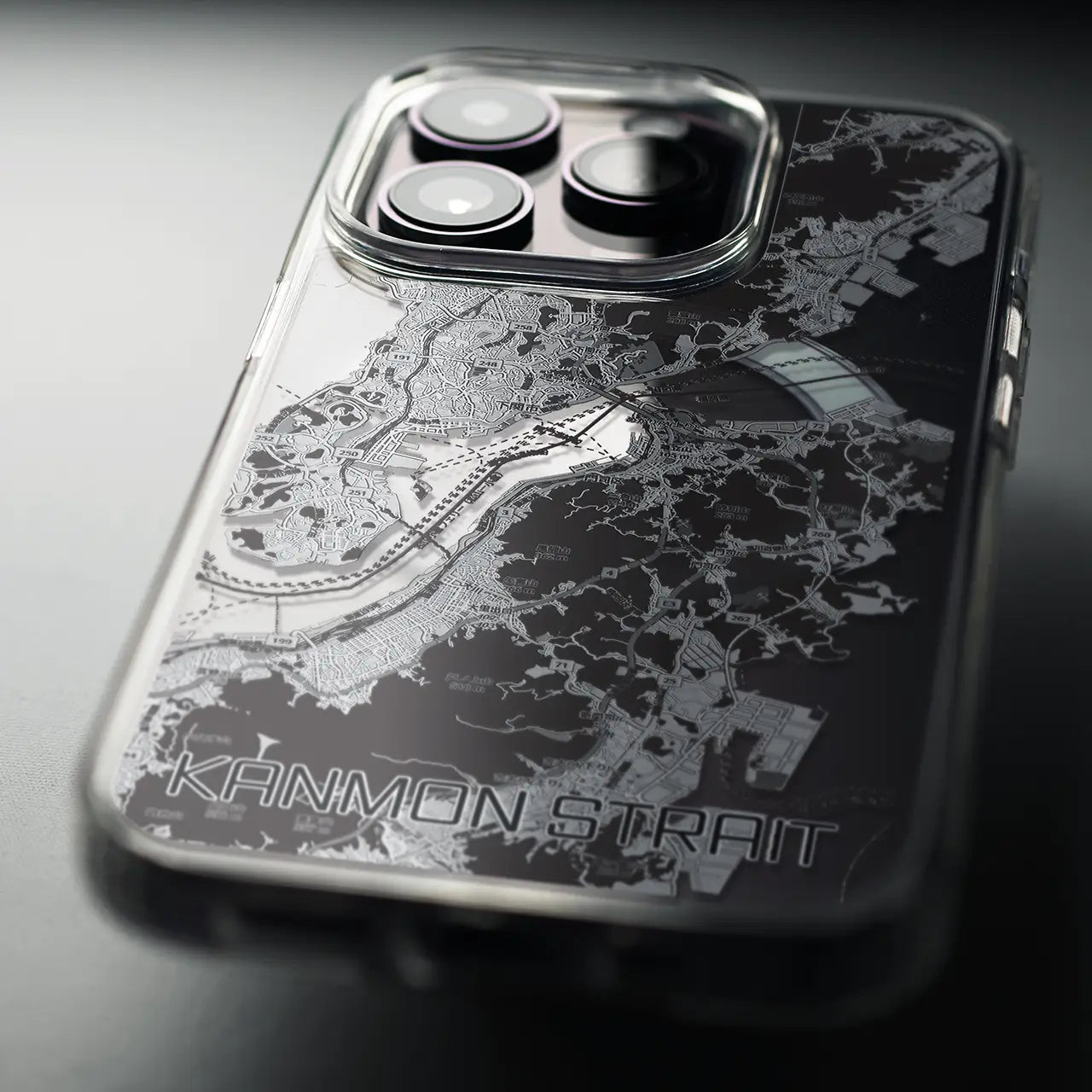【関門海峡(山口県)】地図柄iPhoneケース(MagSafeタイプ)モノトーン・iPhone 16 Pro 用