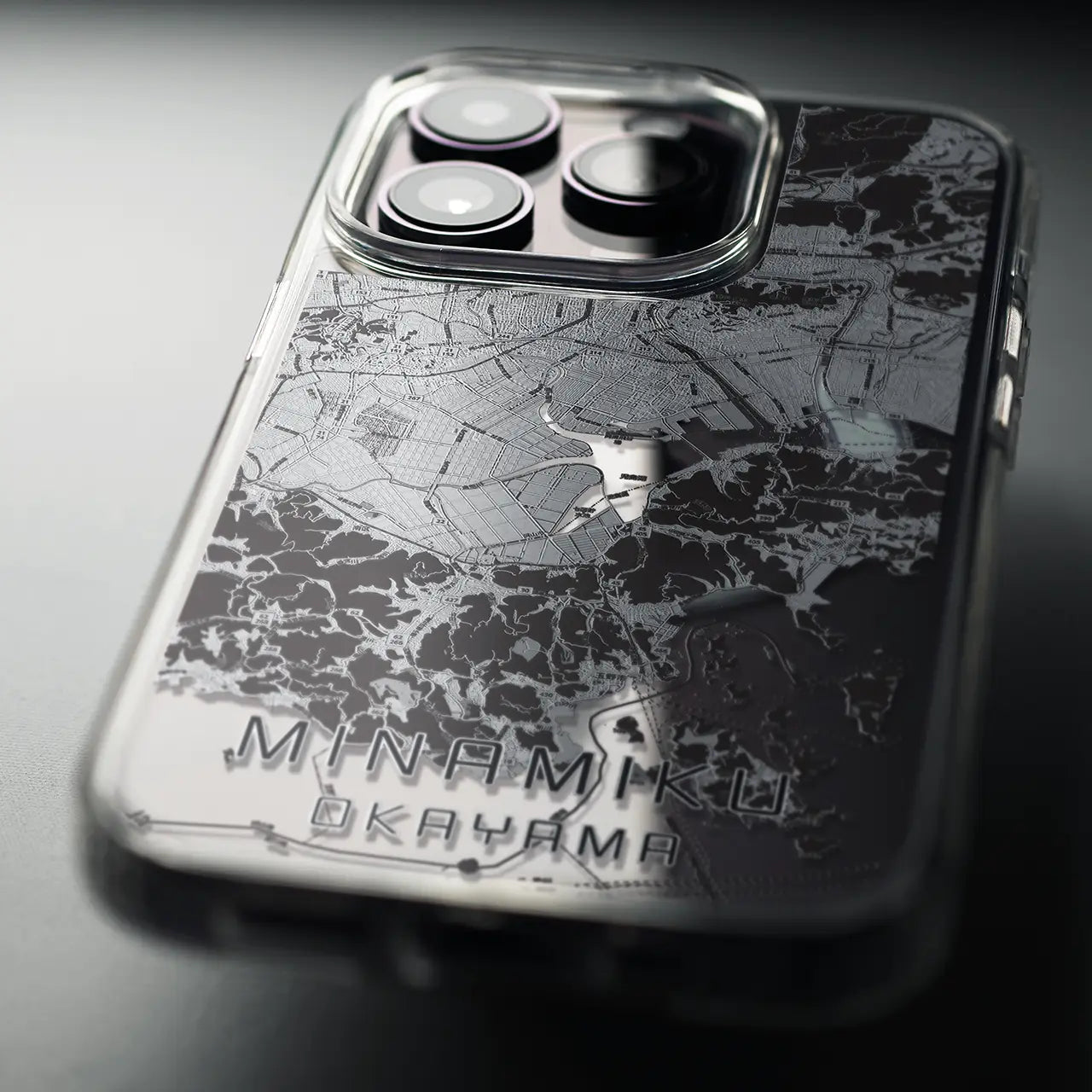 【南区(岡山市)】地図柄iPhoneケース(MagSafeタイプ)モノトーン・iPhone 16 Pro 用