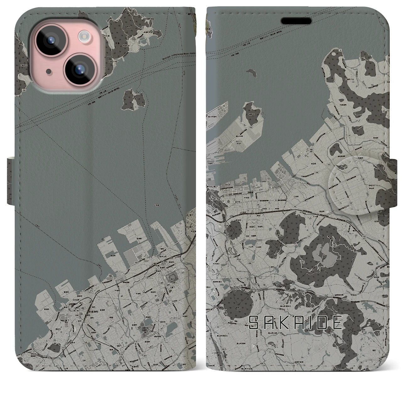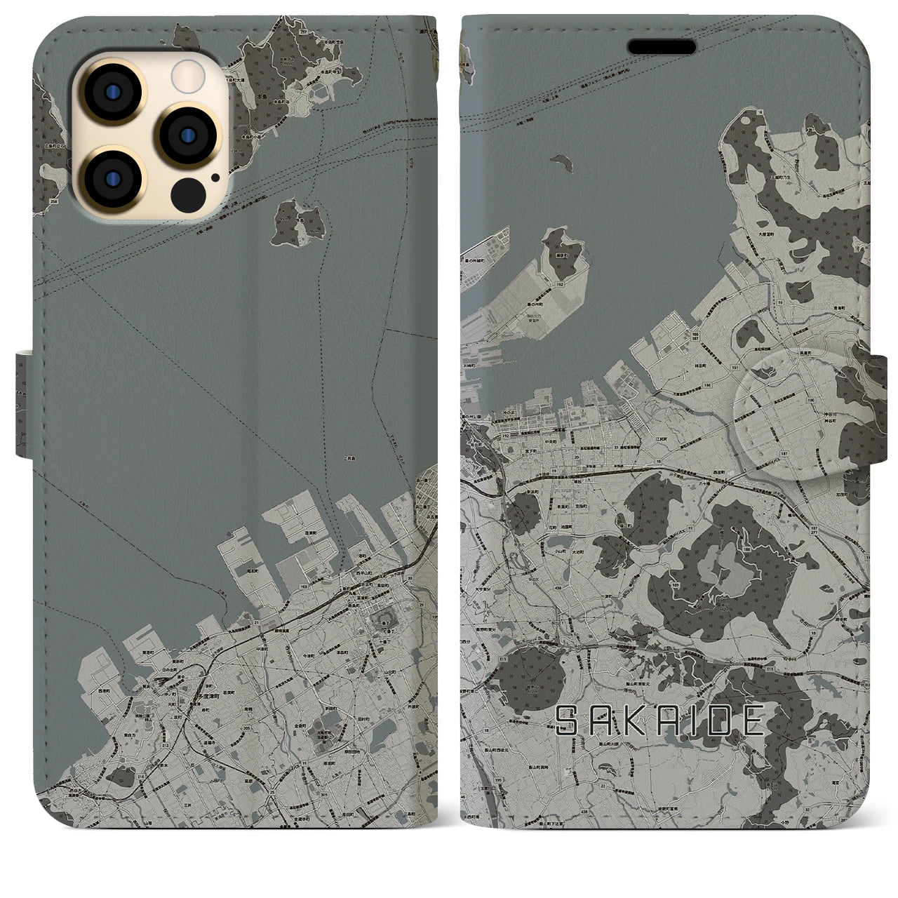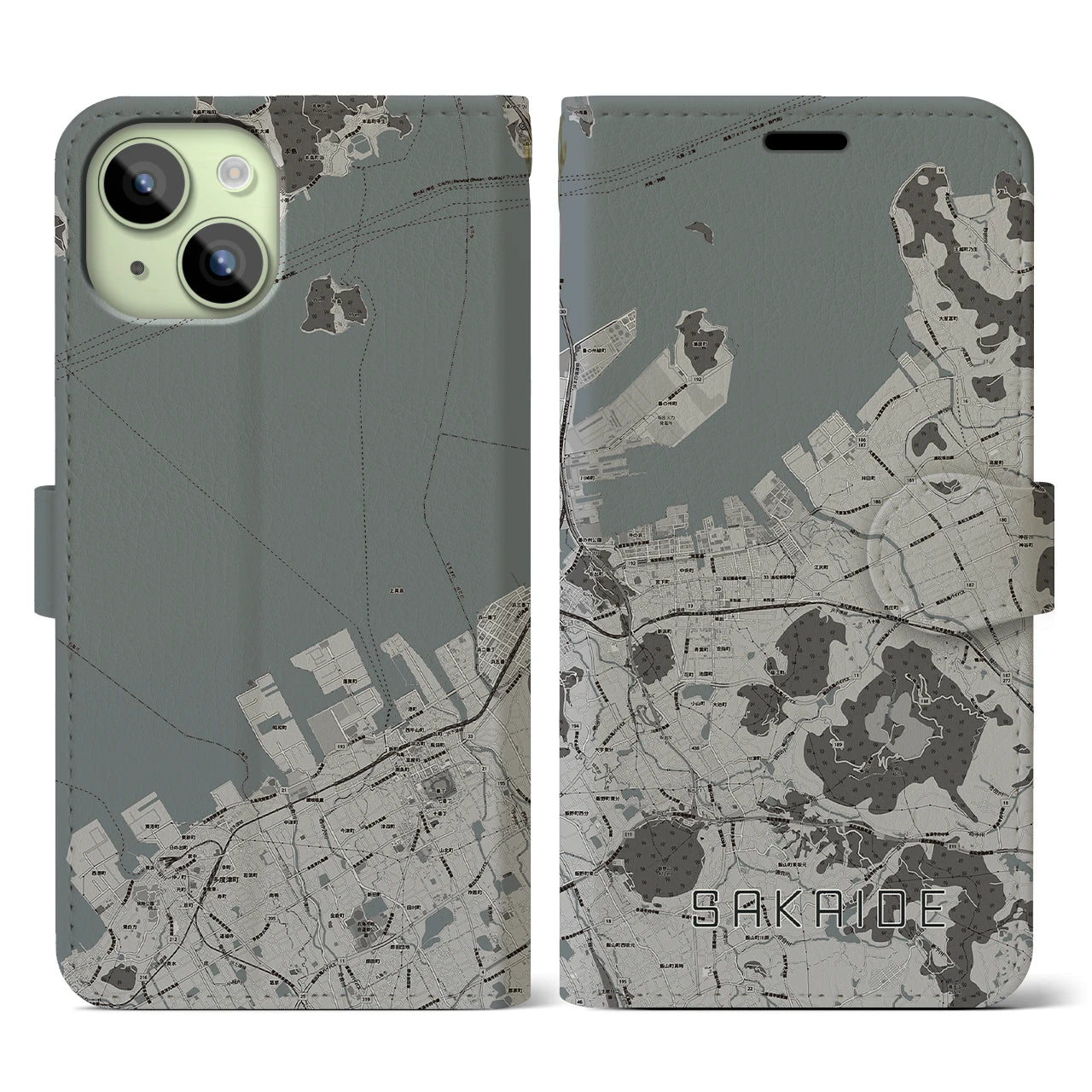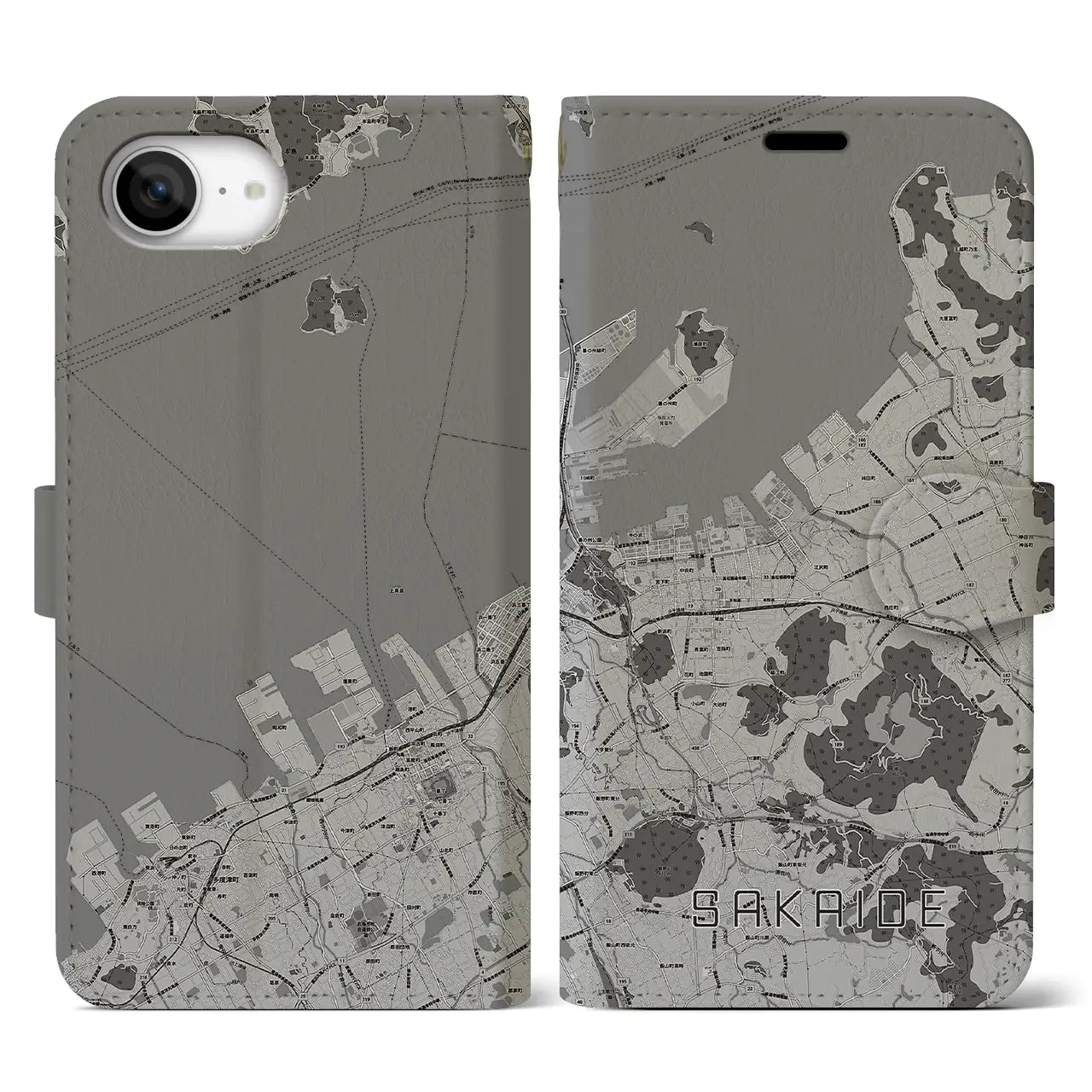 思い出の街、今を暮らす街、あなたが愛する「坂出」の手帳タイプ地図柄iPhoneケースです。両面にまたがる大きなプリントで、離れていても「坂出」をいつも身近に感じさせてくれます。