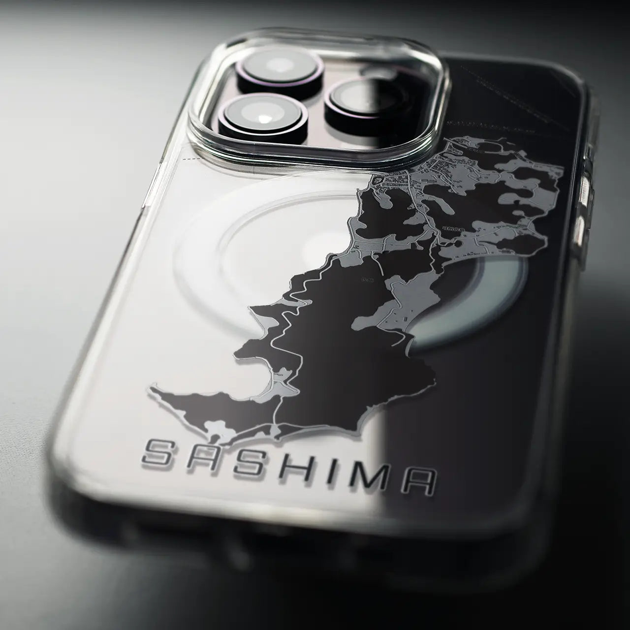 【佐島(愛媛県)】地図柄iPhoneケース(MagSafeタイプ)モノトーン・iPhone 16 Pro 用