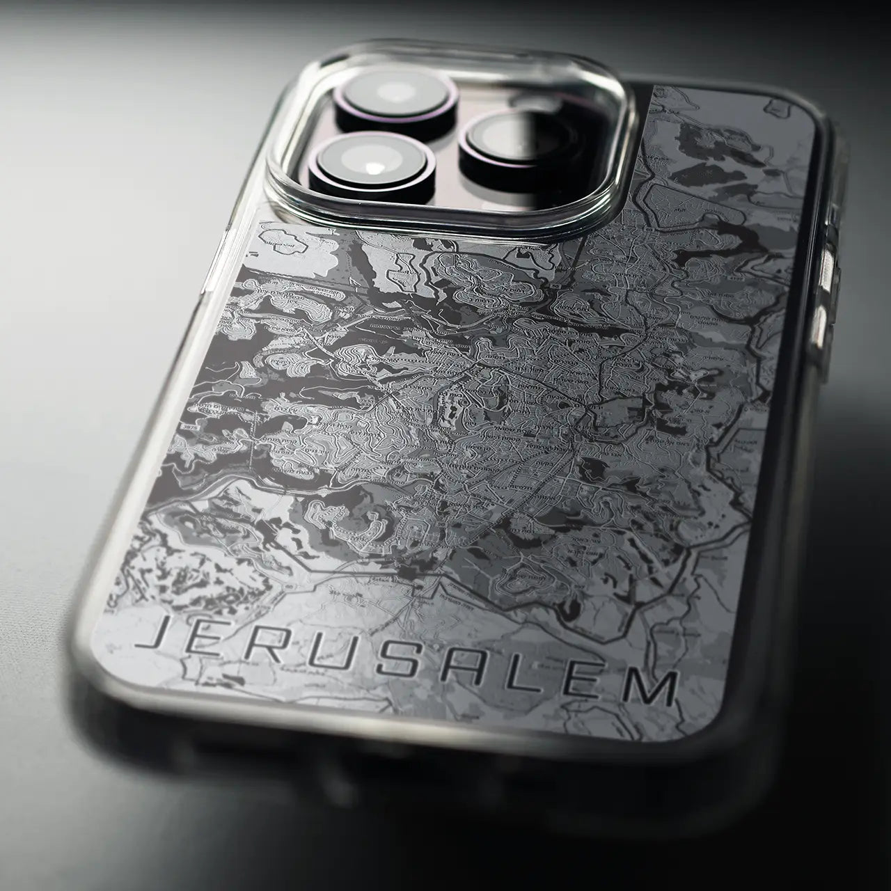 【エルサレム(イスラエル)】地図柄iPhoneケース(MagSafeタイプ)モノトーン・iPhone 16 Pro 用