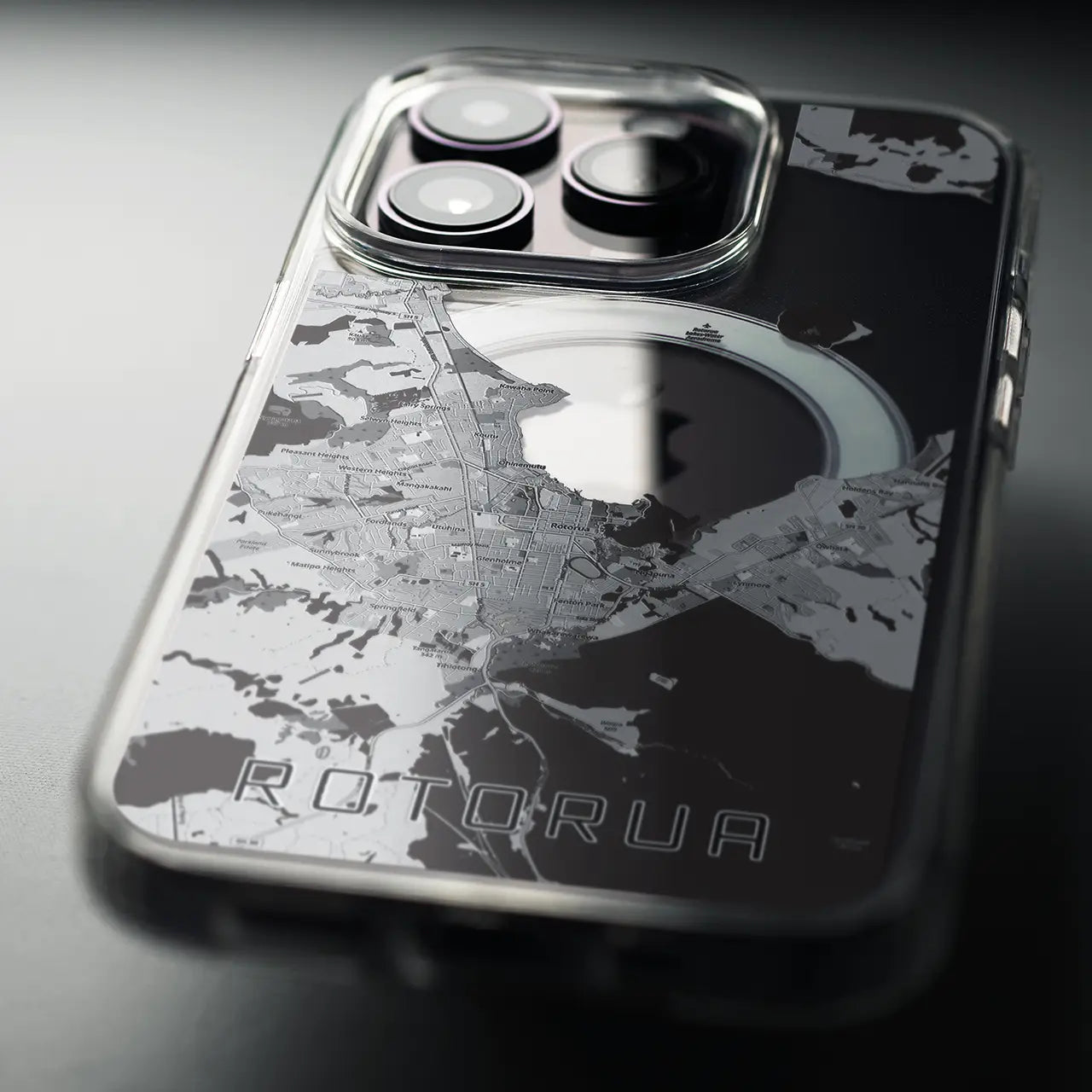 【ロトルア(ニュージーランド)】地図柄iPhoneケース(MagSafeタイプ)モノトーン・iPhone 16 Pro 用