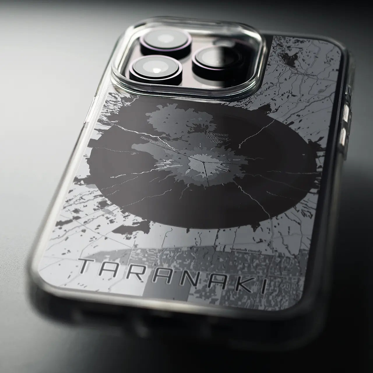 【タラナキ山(ニュージーランド)】地図柄iPhoneケース(MagSafeタイプ)モノトーン・iPhone 16 Pro 用