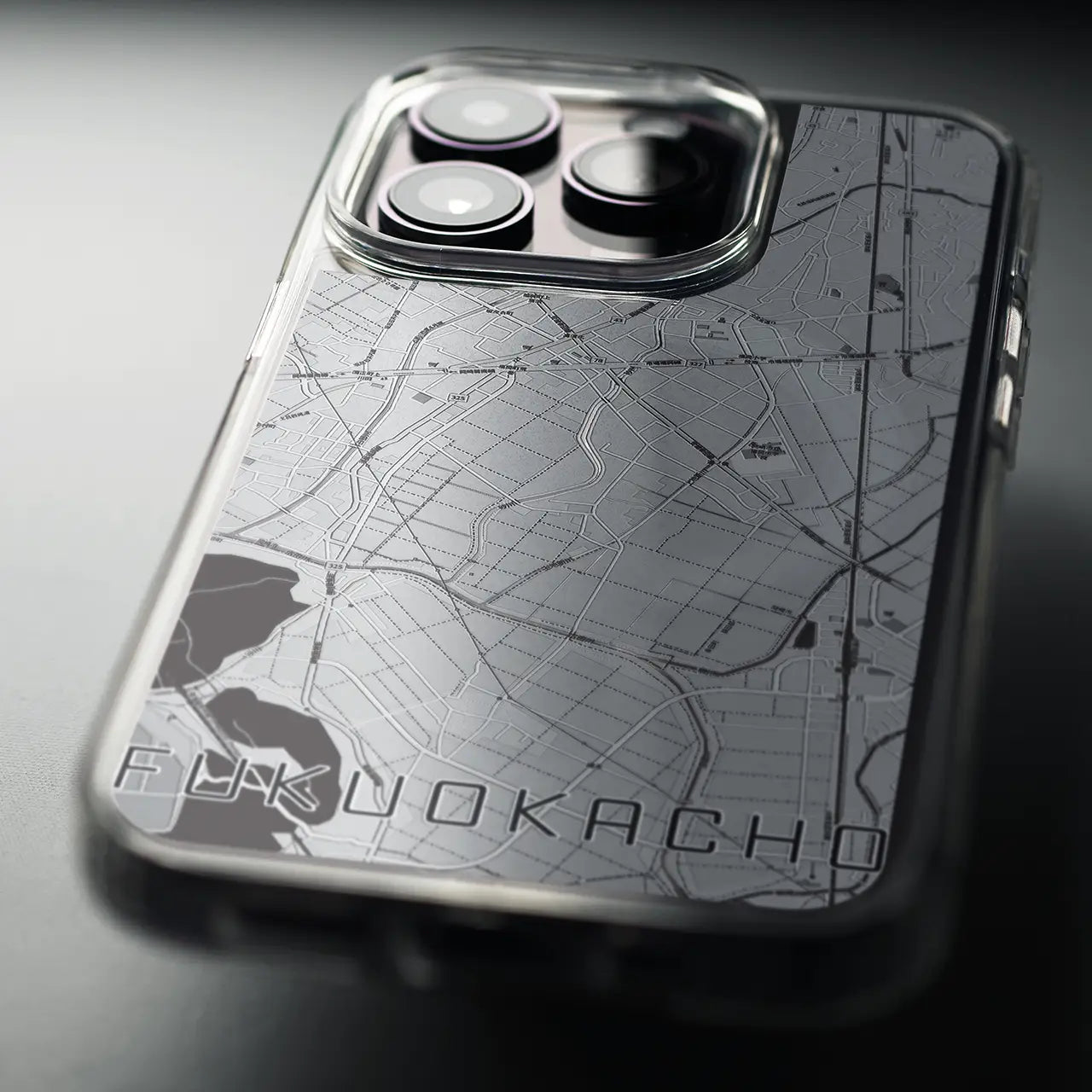 【福岡町(愛知県)】地図柄iPhoneケース(MagSafeタイプ)モノトーン・iPhone 16 Pro 用