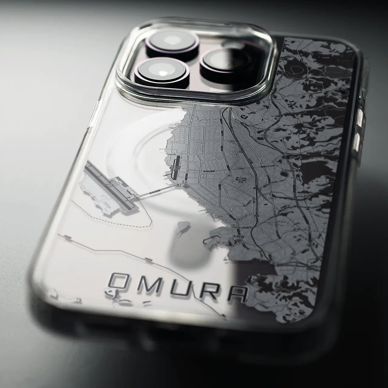 【大村(長崎県)】地図柄iPhoneケース(MagSafeタイプ)モノトーン・iPhone 16 Pro 用