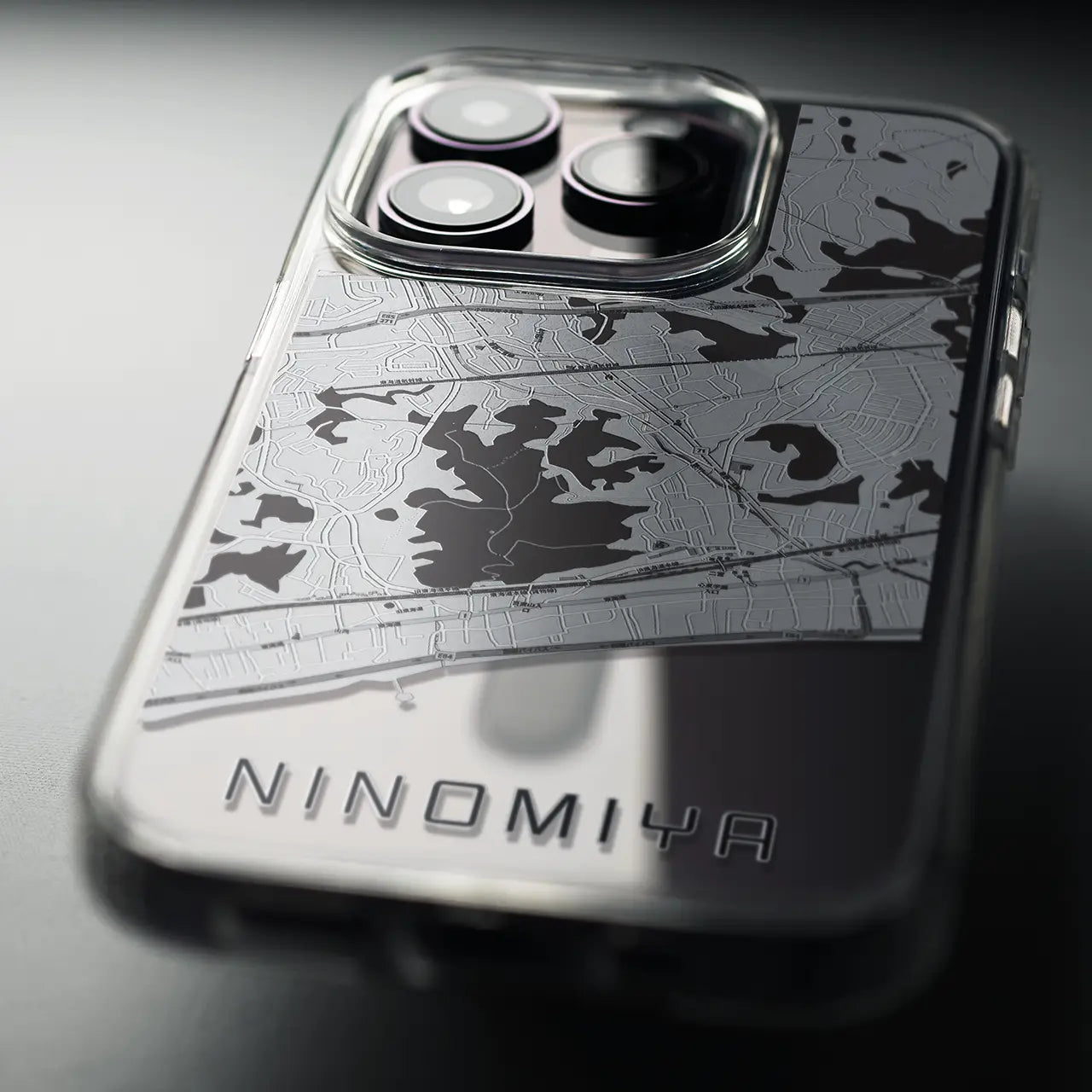 【二宮(神奈川県)】地図柄iPhoneケース(MagSafeタイプ)モノトーン・iPhone 16 Pro 用