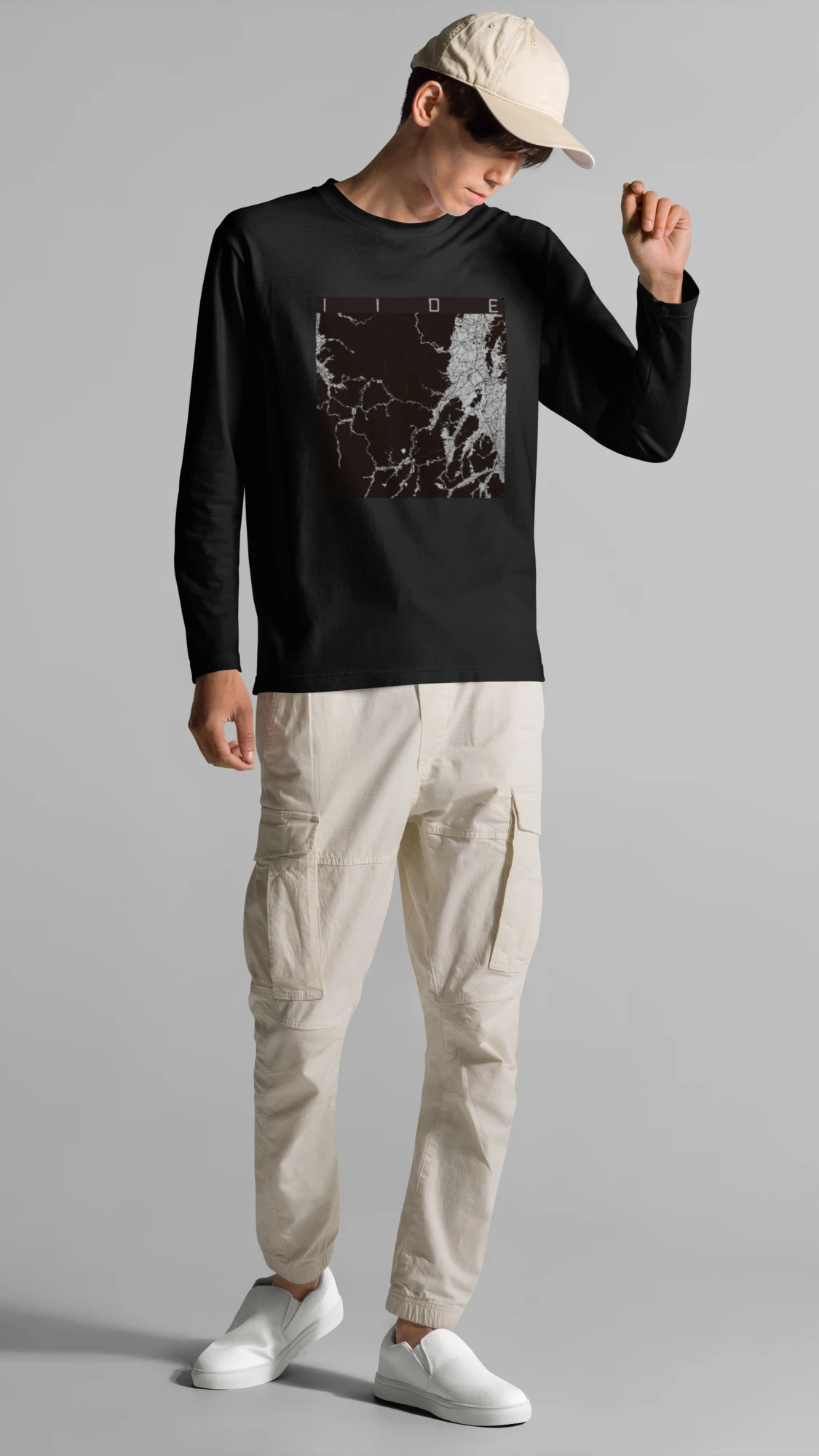 幅広いシーズンにフィットする長袖Tシャツにあなたの街「飯豊」のモノトーンマップをプリントしました。
