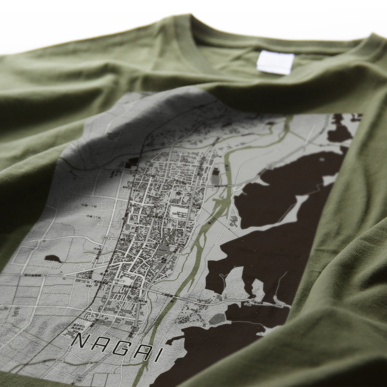 フロントいっぱいに特別大きくプリントされた地図は海や川の部分に生地色が覗き、街のシルエットがそのままあなたのスタイルになります。