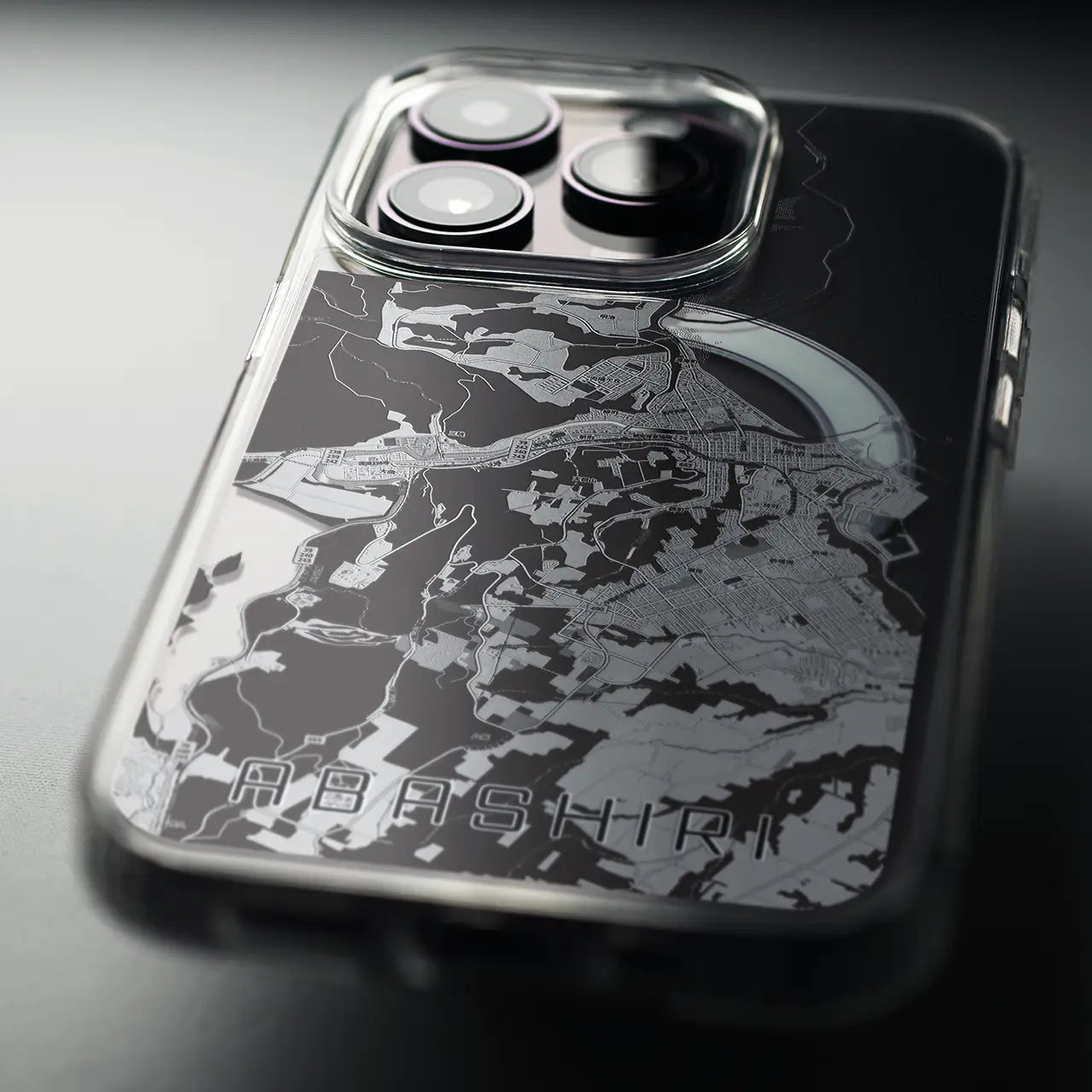 【網走(北海道)】地図柄iPhoneケース(MagSafeタイプ)モノトーン・iPhone 16 Pro 用