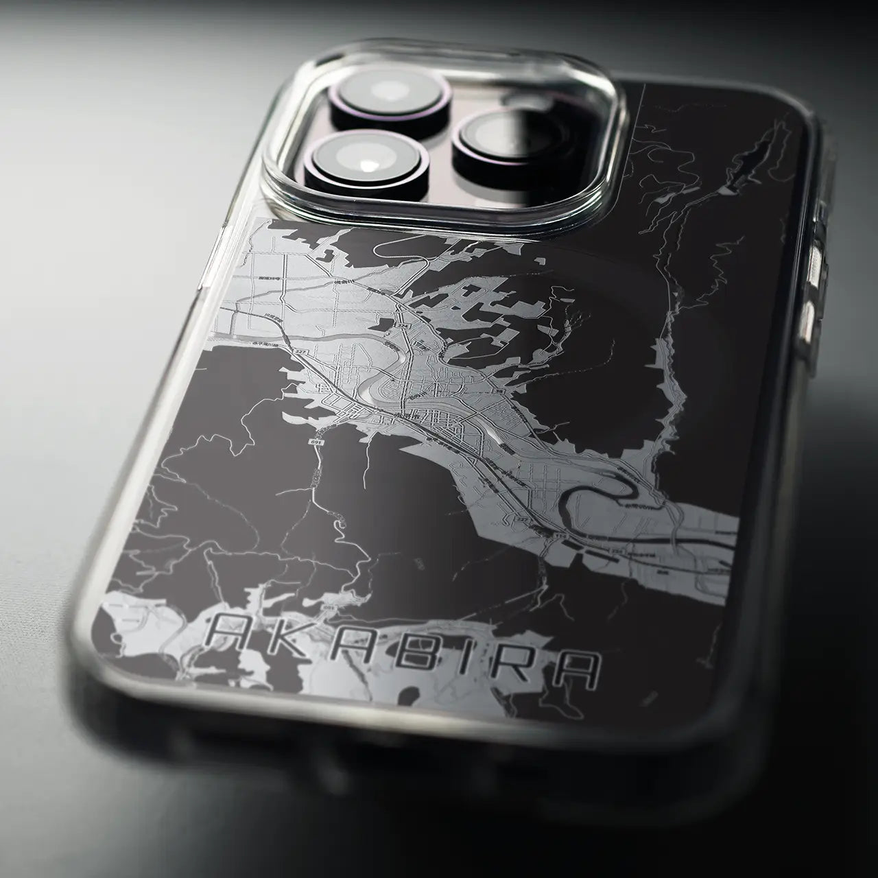 【赤平(北海道)】地図柄iPhoneケース(MagSafeタイプ)モノトーン・iPhone 16 Pro 用