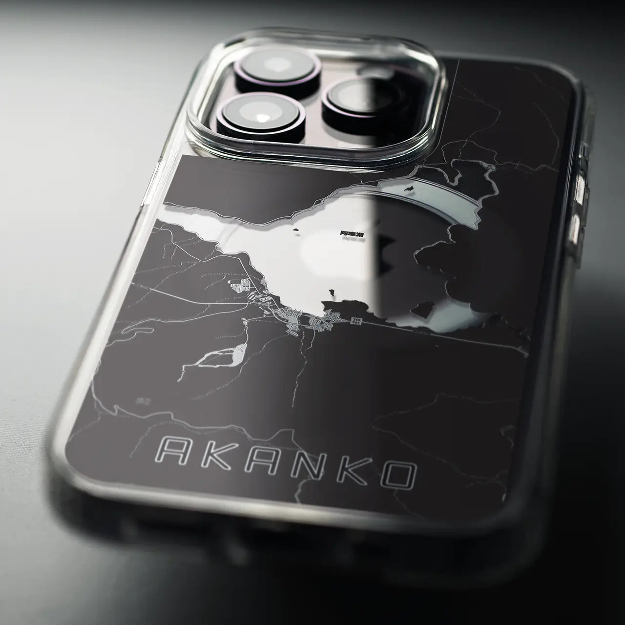 【阿寒湖(北海道)】地図柄iPhoneケース(MagSafeタイプ)モノトーン・iPhone 16 Pro 用