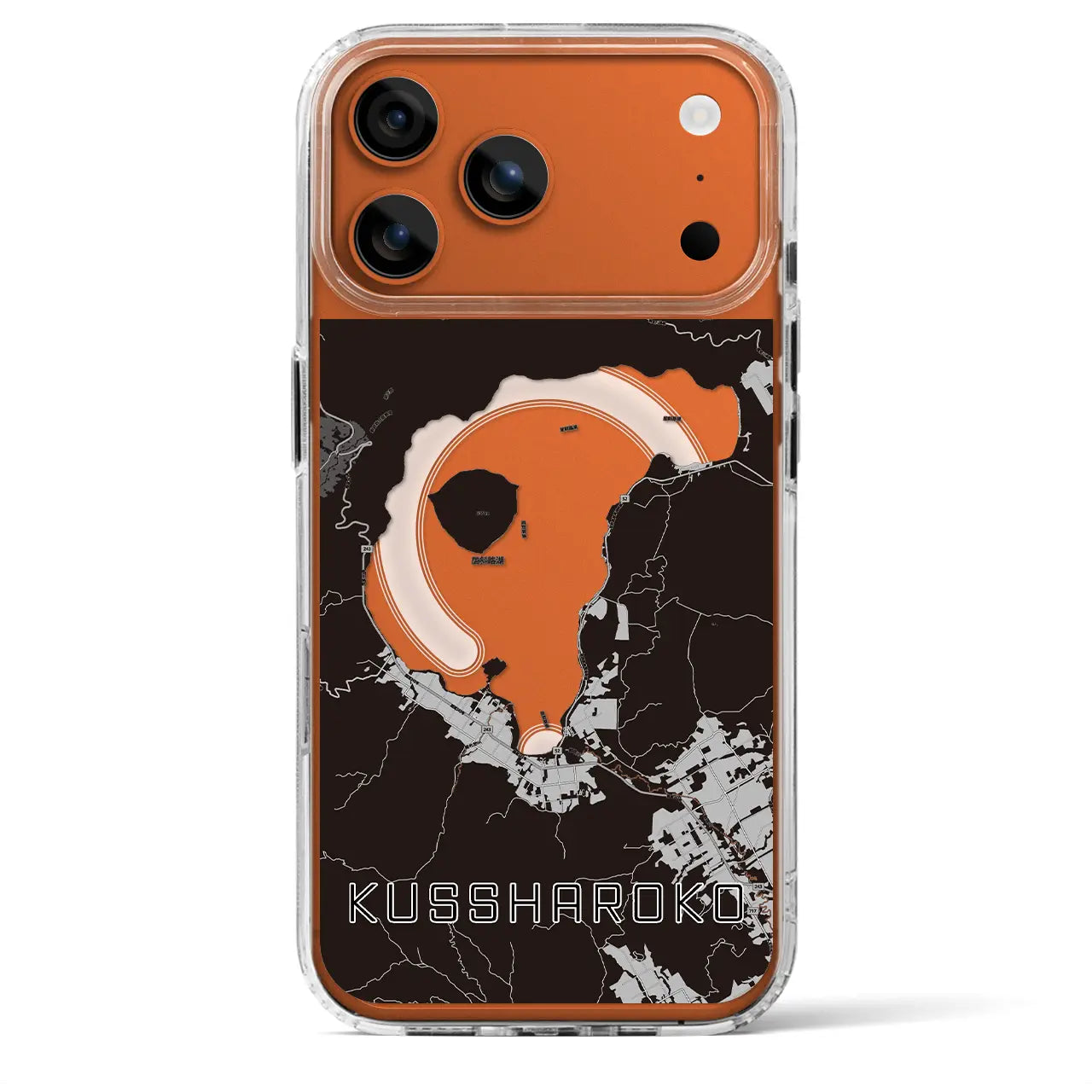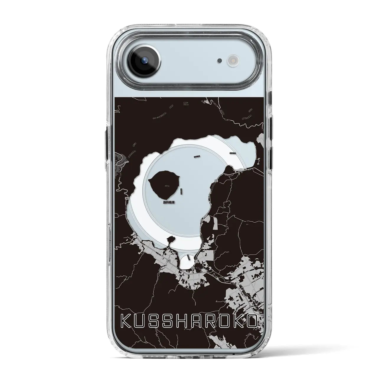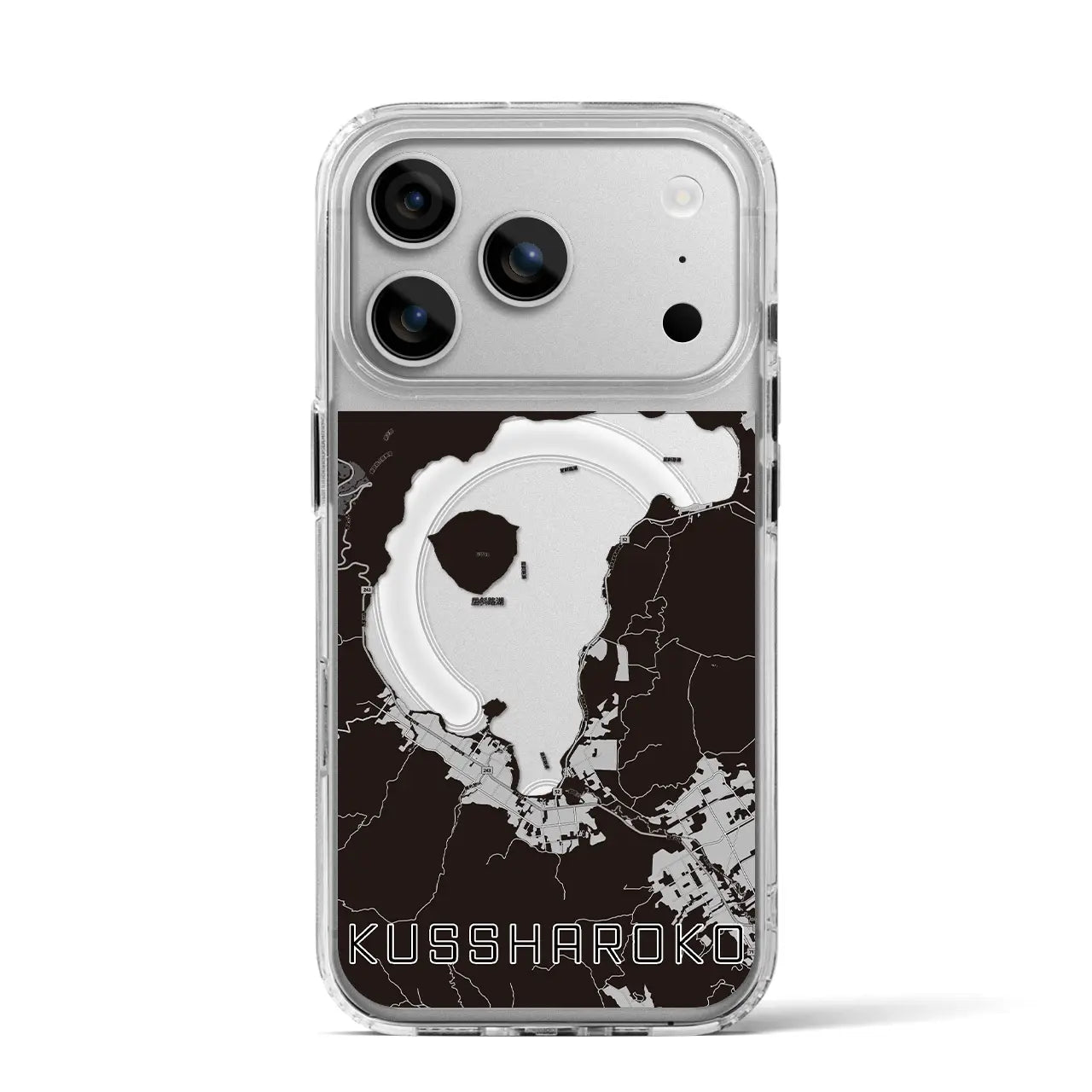 【屈斜路湖(北海道)】地図柄iPhoneケース(MagSafeタイプ)モノトーン・iPhone 16 Pro 用