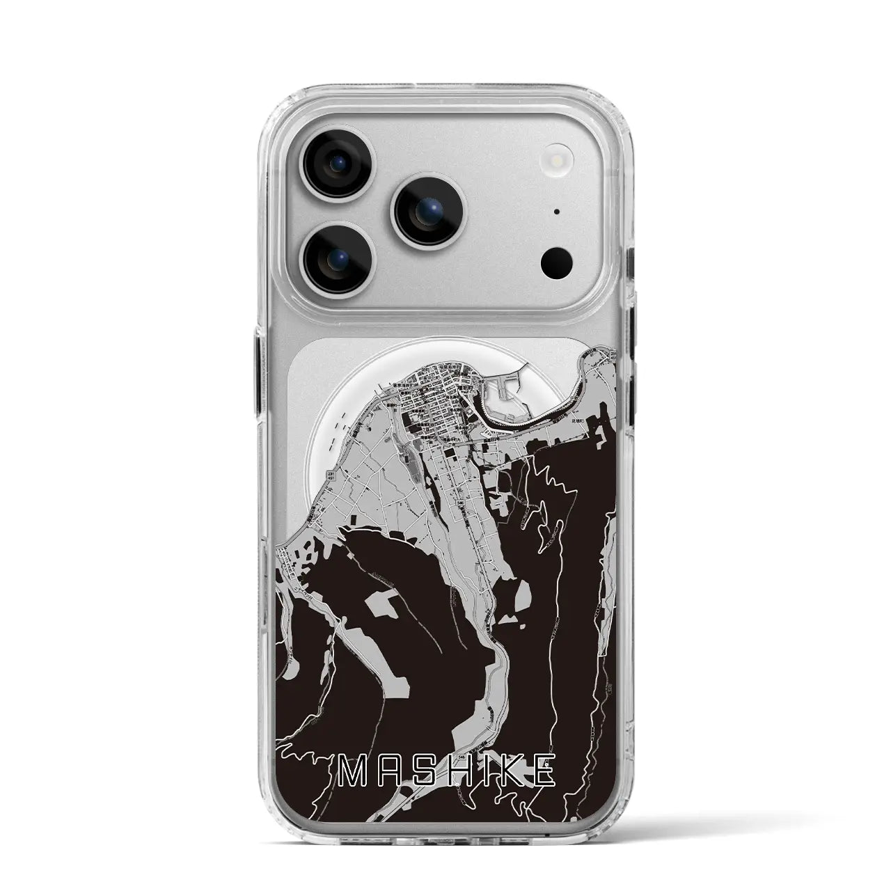 【増毛(北海道)】地図柄iPhoneケース(MagSafeタイプ)モノトーン・iPhone 16 Pro 用