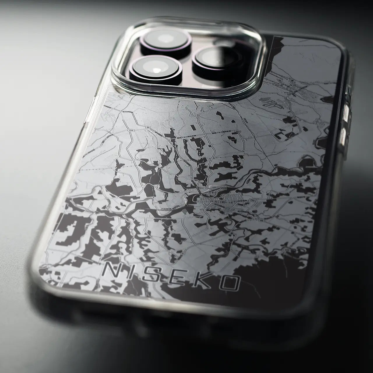 【ニセコ(北海道)】地図柄iPhoneケース(MagSafeタイプ)モノトーン・iPhone 16 Pro 用