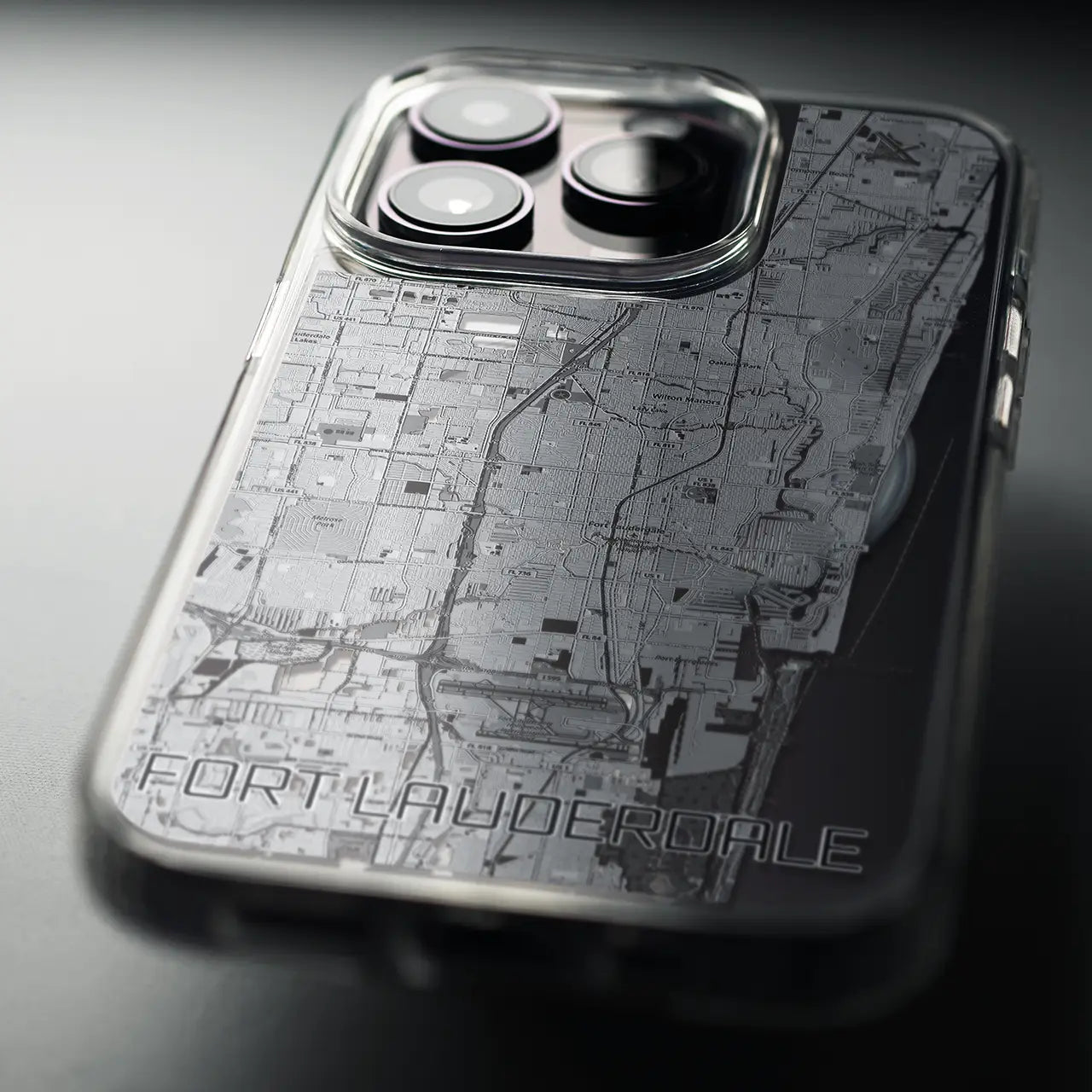 【フォートローダーデール(アメリカ)】地図柄iPhoneケース(MagSafeタイプ)モノトーン・iPhone 16 Pro 用