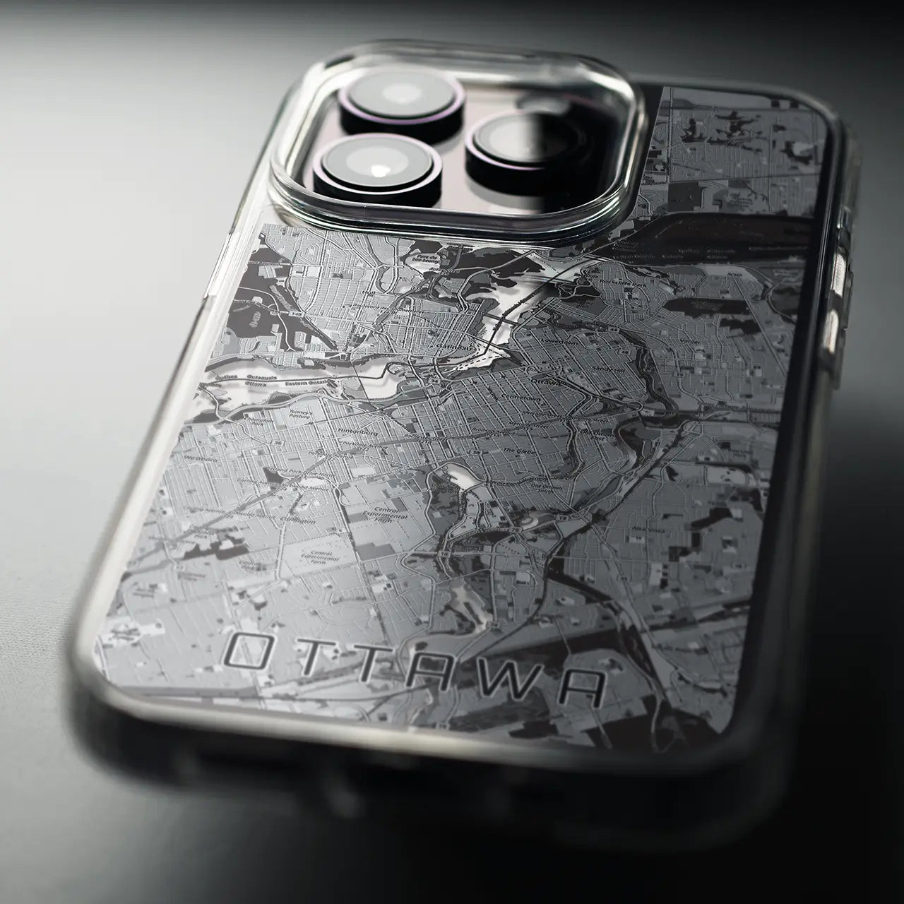 【オタワ(カナダ)】地図柄iPhoneケース(MagSafeタイプ)モノトーン・iPhone 16 Pro 用
