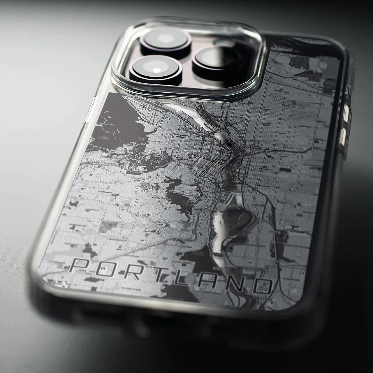 【ポートランド(アメリカ)】地図柄iPhoneケース(MagSafeタイプ)モノトーン・iPhone 16 Pro 用