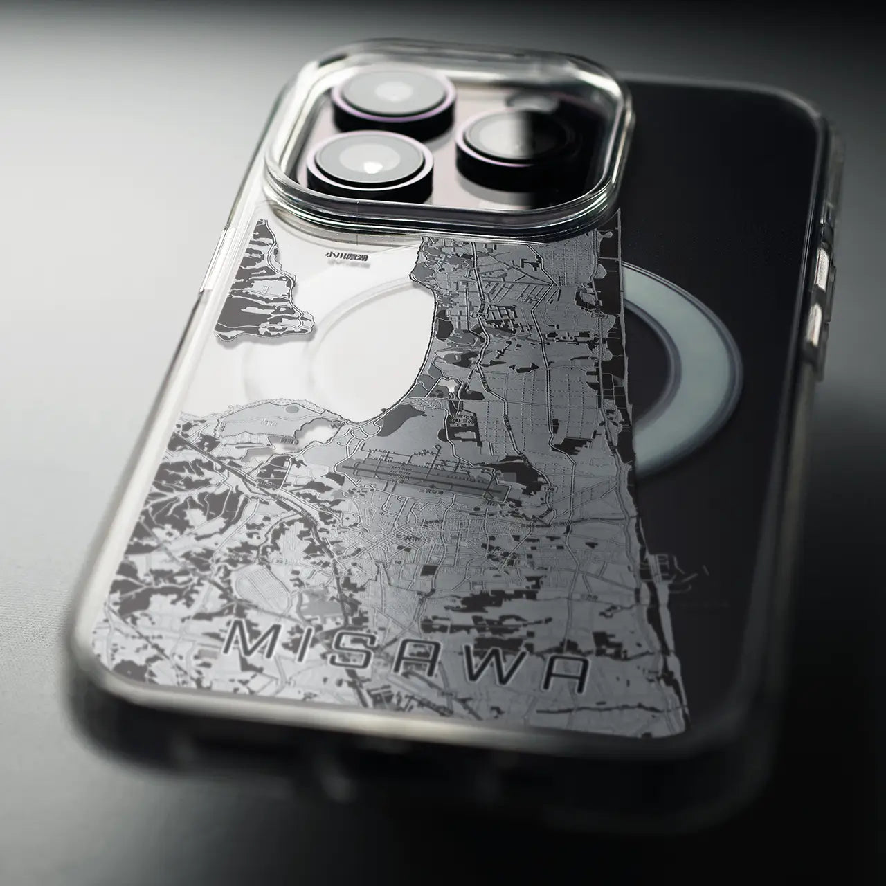 【三沢(青森県)】地図柄iPhoneケース(MagSafeタイプ)モノトーン・iPhone 16 Pro 用