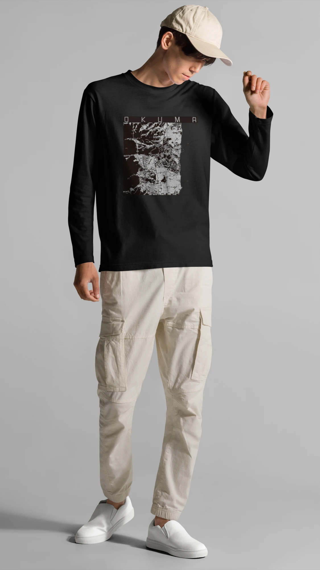 幅広いシーズンにフィットする長袖Tシャツにあなたの街「大熊」のモノトーンマップをプリントしました。
