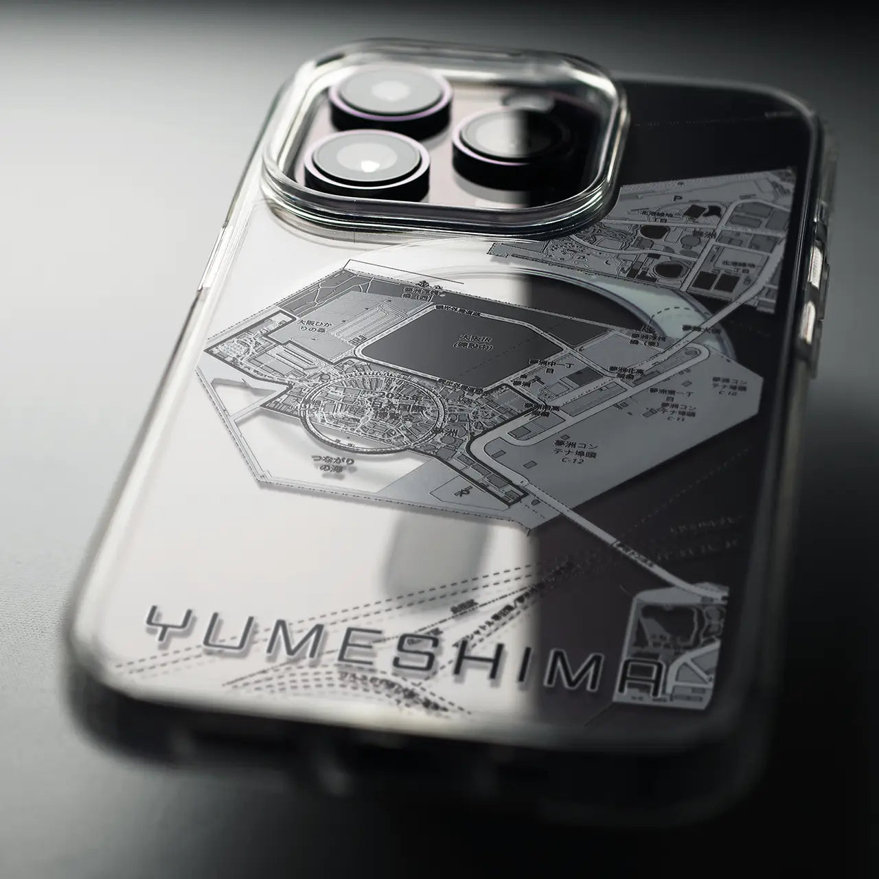 【夢洲(大阪府)】地図柄iPhoneケース(MagSafeタイプ)モノトーン・iPhone 16 Pro 用
