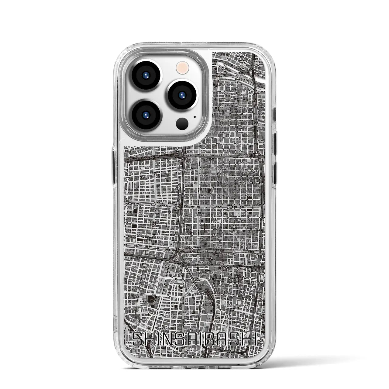 【心斎橋(大阪府)】地図柄iPhoneケース(MagSafeタイプ)モノトーン・iPhone 16 Pro 用