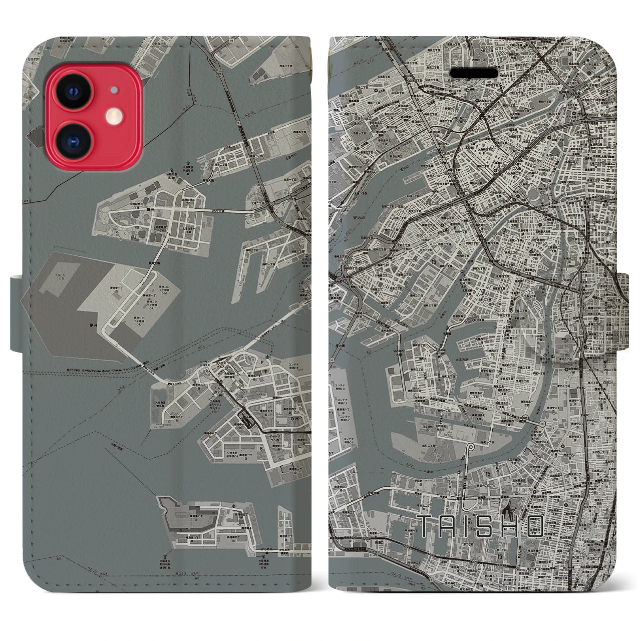 【大正(大阪府)】地図柄iPhoneケース(手帳タイプ)モノトーン・iPhone 11 用