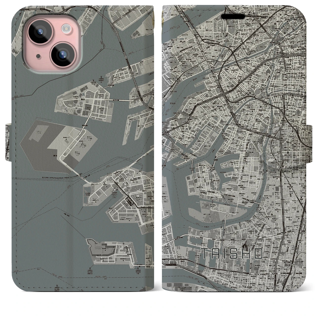 【大正(大阪府)】地図柄iPhoneケース(手帳タイプ)モノトーン・iPhone 15 Plus 用