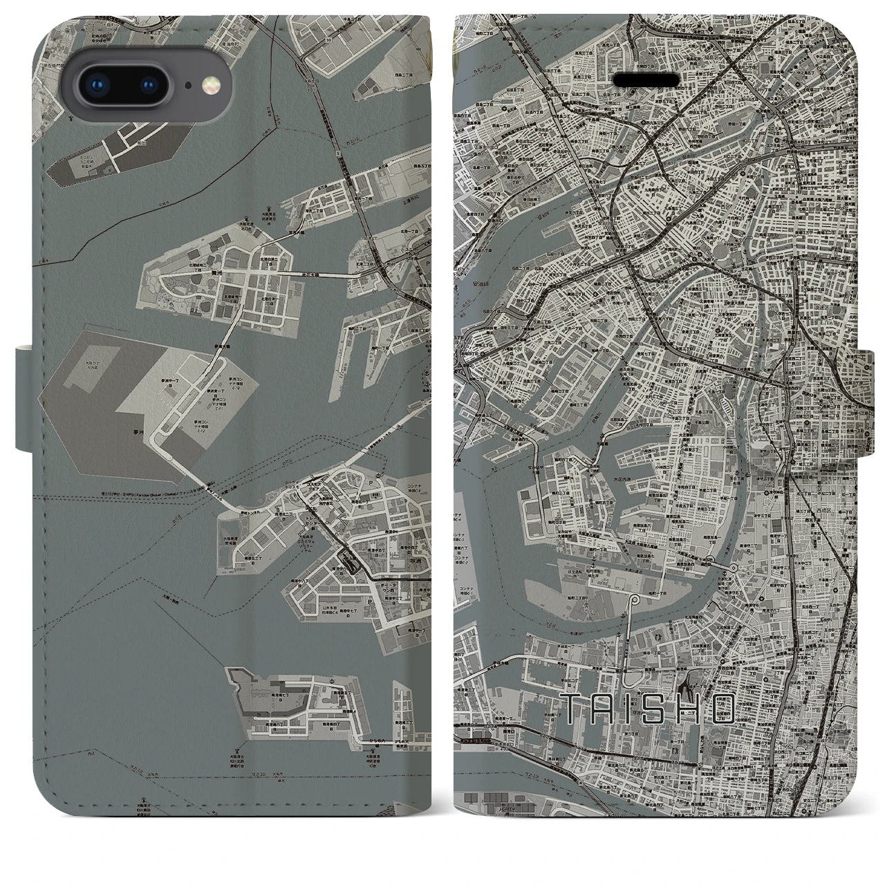 【大正(大阪府)】地図柄iPhoneケース(手帳タイプ)モノトーン・iPhone 8Plus /7Plus / 6sPlus / 6Plus 用