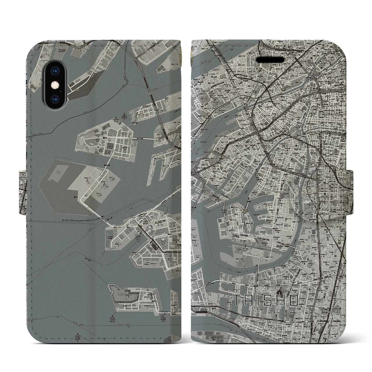 【大正(大阪府)】地図柄iPhoneケース(手帳タイプ)モノトーン・iPhone XS / X 用