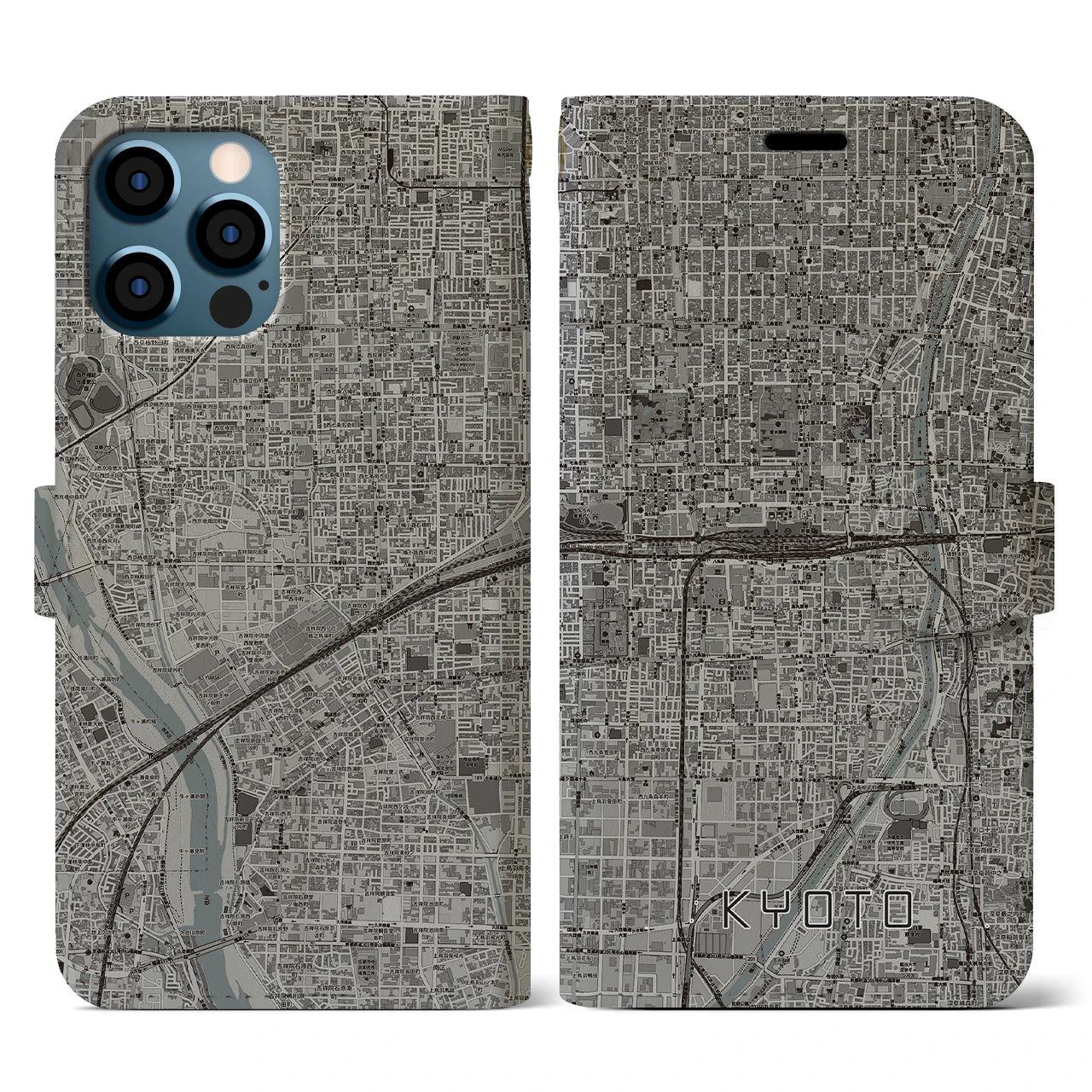 【京都2(京都府)】地図柄iPhoneケース(手帳タイプ)モノトーン・iPhone 12 Pro Max 用