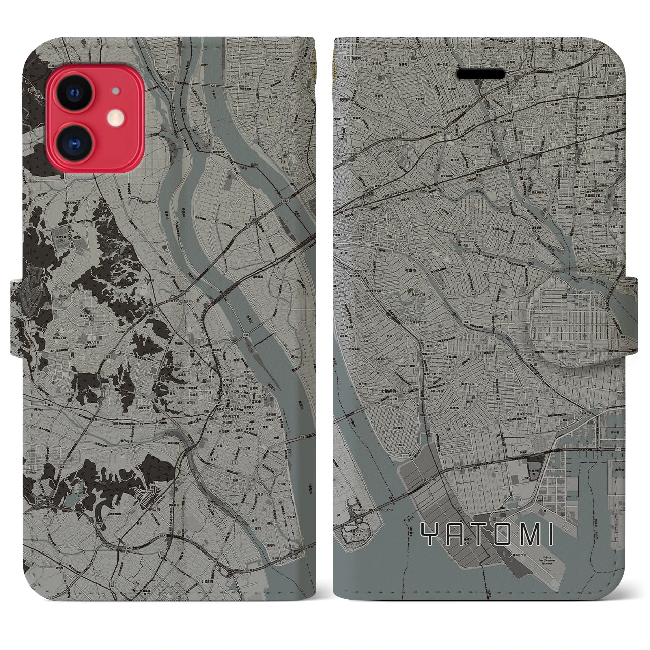 【弥富(愛知県)】地図柄iPhoneケース(手帳タイプ)モノトーン・iPhone 11 用