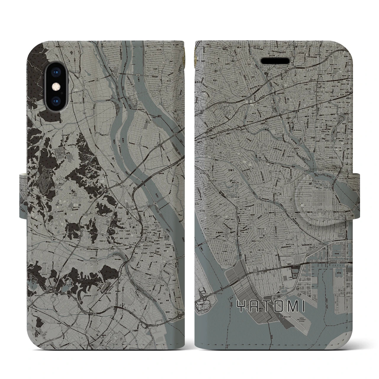 【弥富(愛知県)】地図柄iPhoneケース(手帳タイプ)モノトーン・iPhone XS / X 用