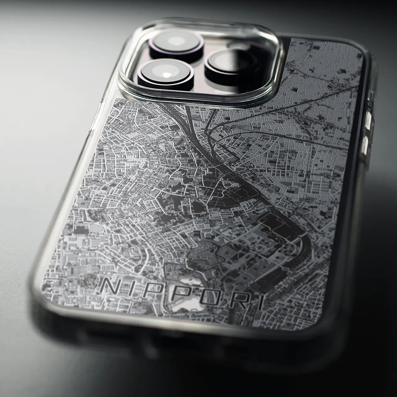 【日暮里(東京都)】地図柄iPhoneケース(MagSafeタイプ)モノトーン・iPhone 16 Pro 用