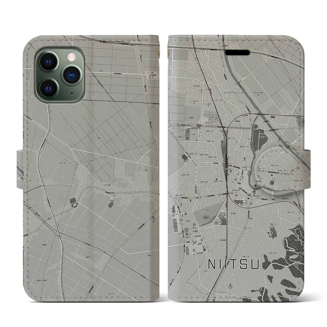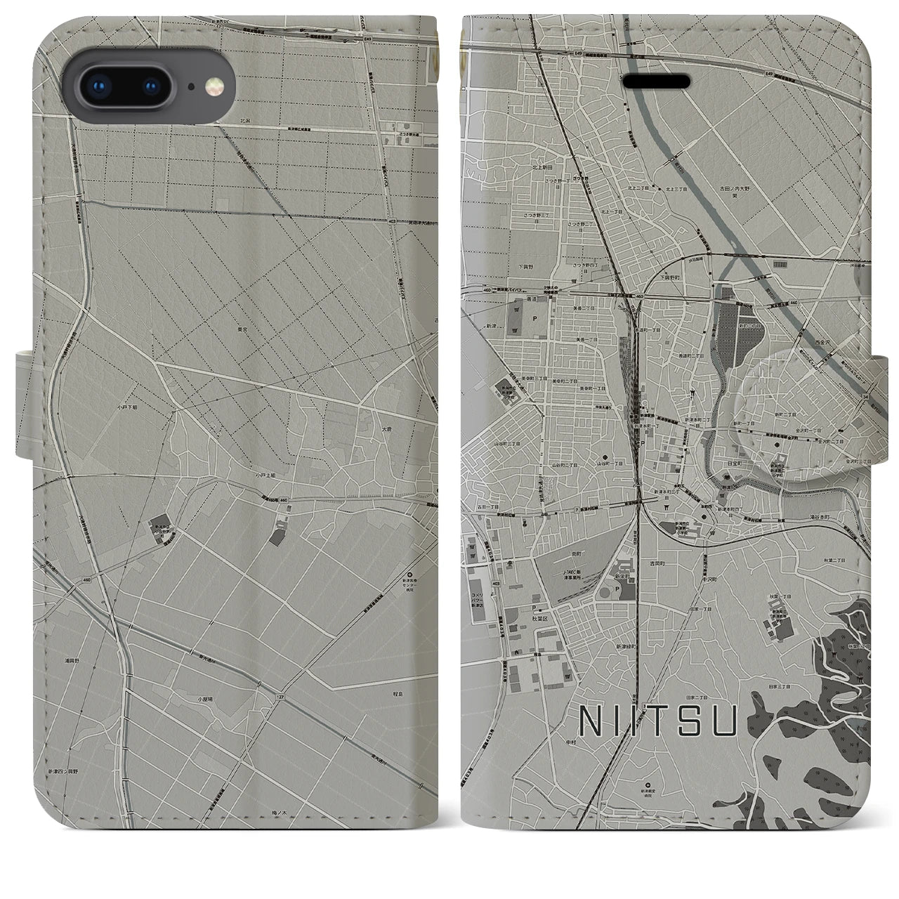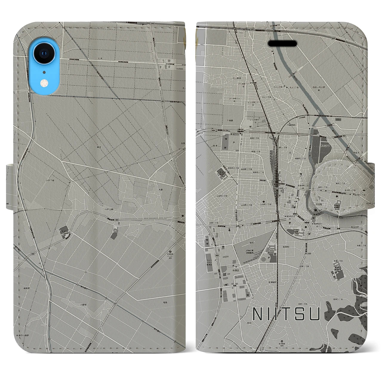 思い出の街、今を暮らす街、あなたが愛する「新津」の手帳タイプ地図柄iPhoneケースです。両面にまたがる大きなプリントで、離れていても「新津」をいつも身近に感じさせてくれます。