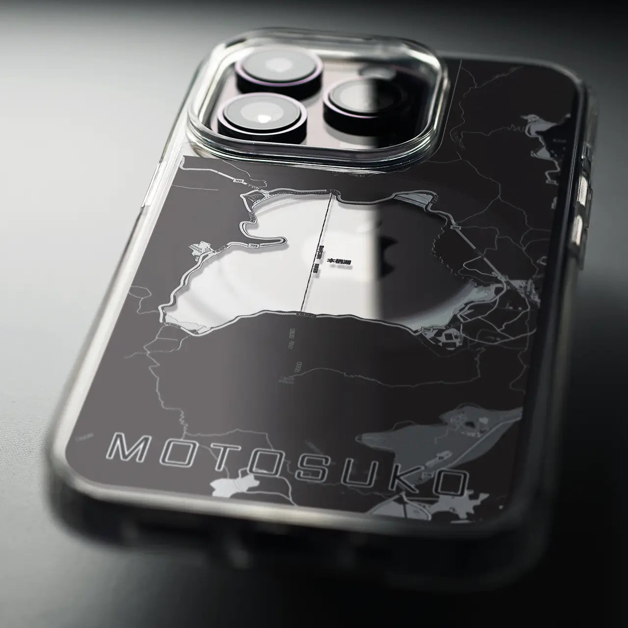 【本栖湖(山梨県)】地図柄iPhoneケース(MagSafeタイプ)モノトーン・iPhone 16 Pro 用